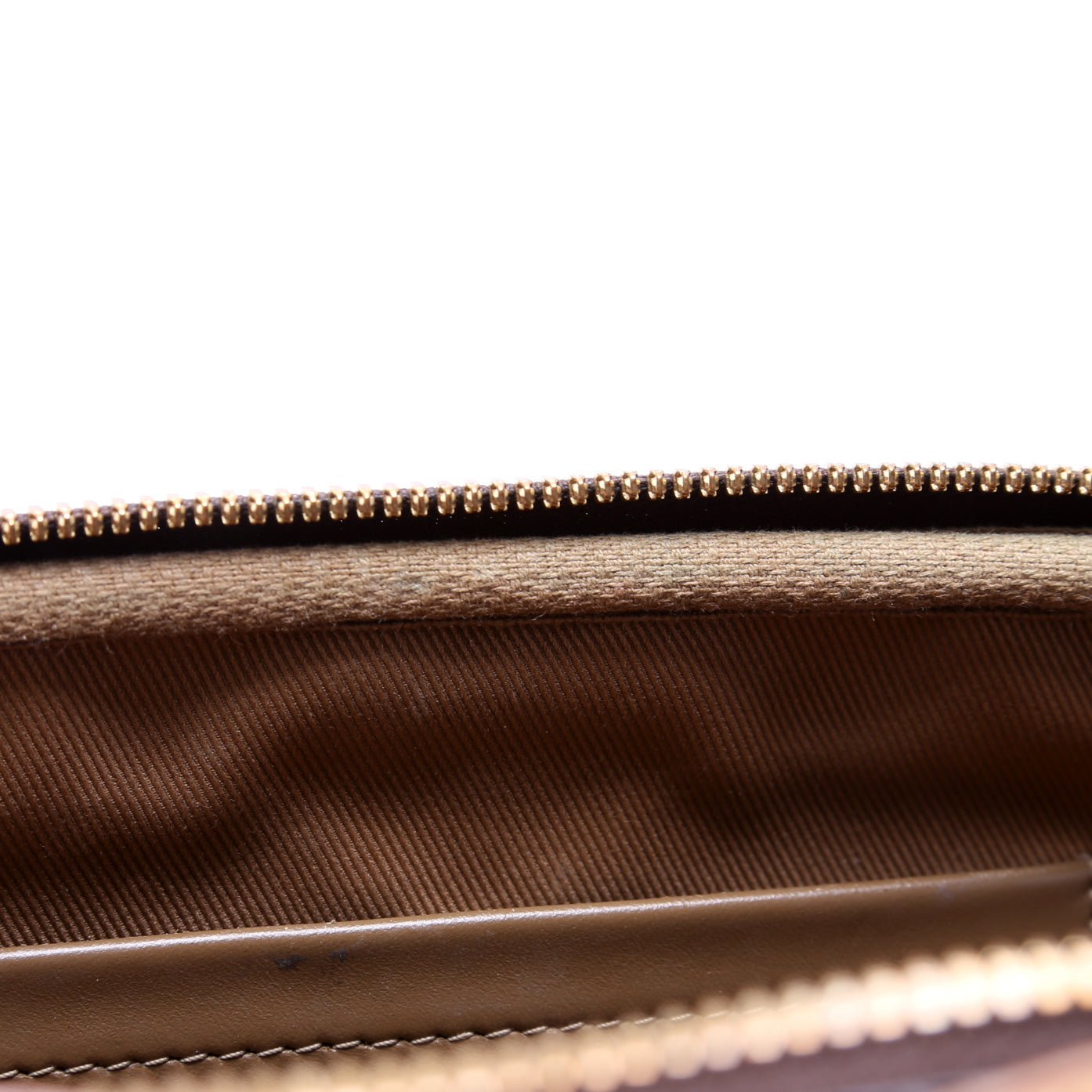 Interior: The interior has minor stains. The interior features one open pocket. The small pouch has minor scuffs and discoloration to the interior.