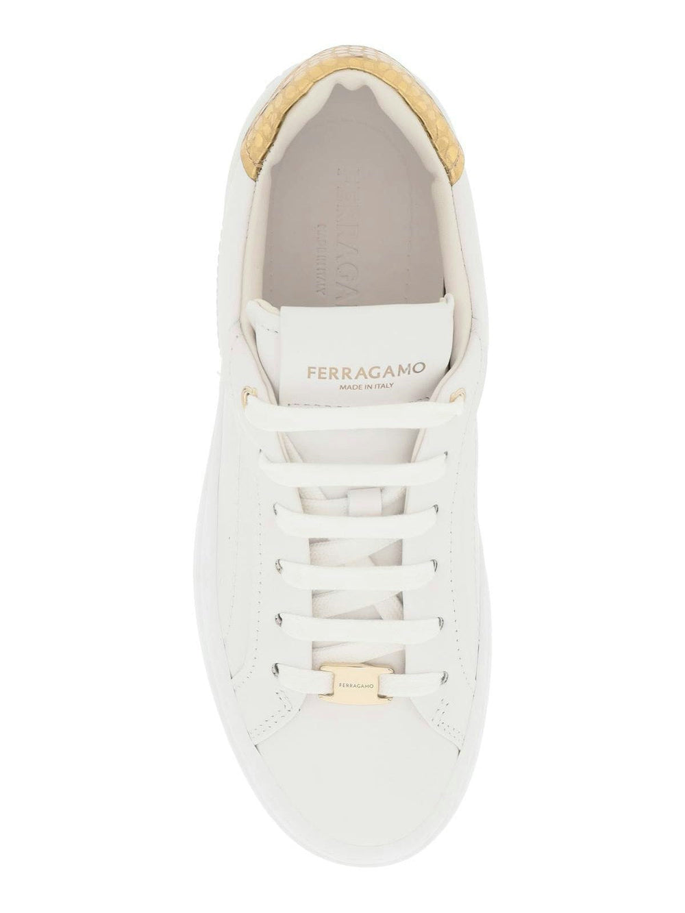 Step up your style game with these sleek platform sneakers. Made of smooth leather with laminated leather spoilers featuring a reptile print, these sneakers are perfect for making a fashion statement. The rubber platform sole ensures comfort and style all day long.