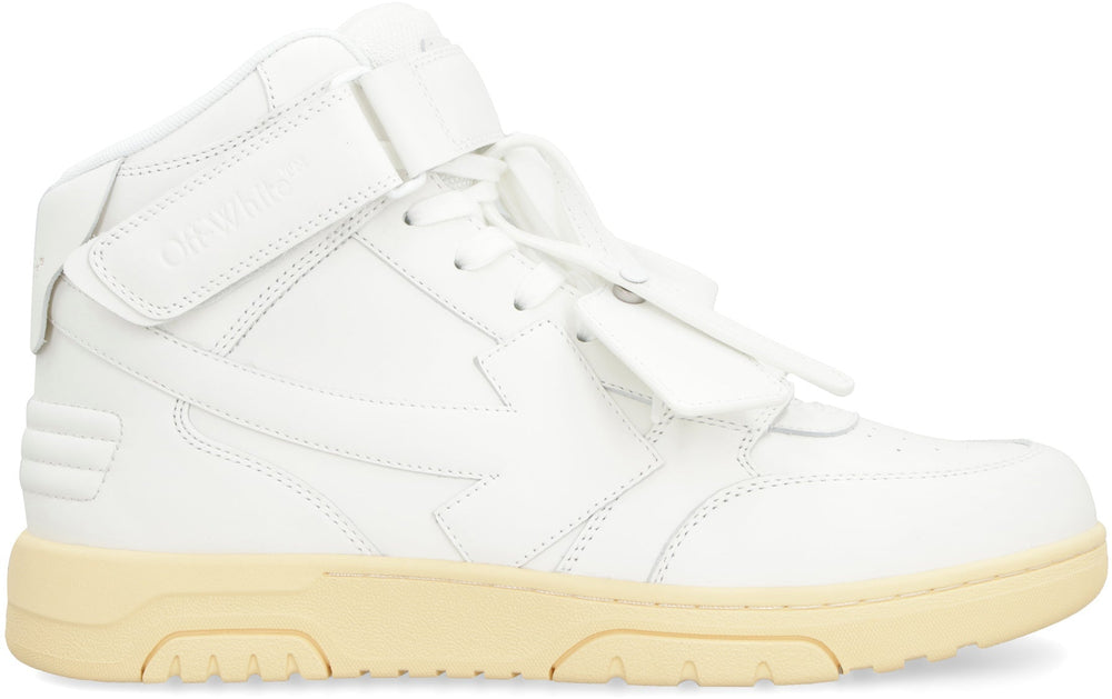 Step up your sneaker game with these high-top sneakers from our Out of Office collection. The VELCRO front strap and arrow detail add a unique touch to this luxurious pair, making them a must-have for any fashion enthusiast. Made with a blend of high-quality materials including polyester, polyurethane, nylon, and leather, these sneakers are not only stylish but also durable and comfortable. Whether you're hitting the streets or heading out for a night on the town, these sneakers will elevate any outfit to the next level of luxury.