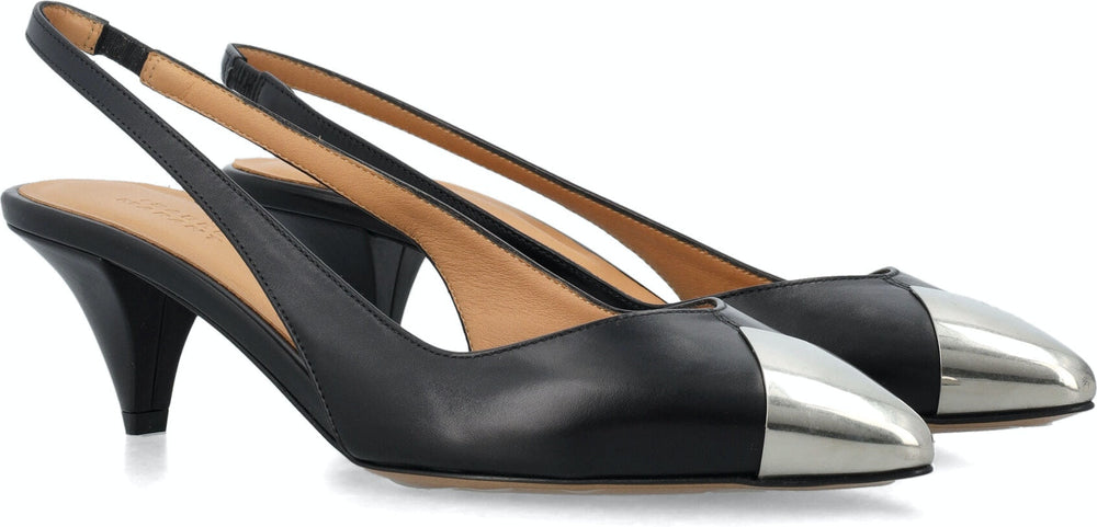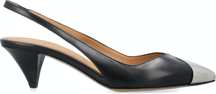Add a touch of edgy sophistication to your shoe game with these leather slingback pumps. The pointed metallic toe adds a modern, stylish look, perfect for all-day wear whether you're at the office or out for a night on the town.