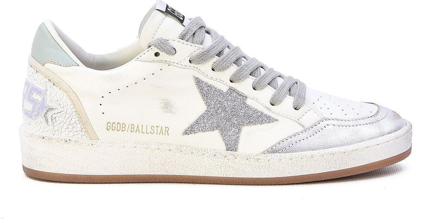 Step up your sneaker game with these vintage white and silver leather kicks. Featuring a lace-up closure, side glitter star, and -out effect, these sneakers are perfect for adding a touch of edge to any outfit.