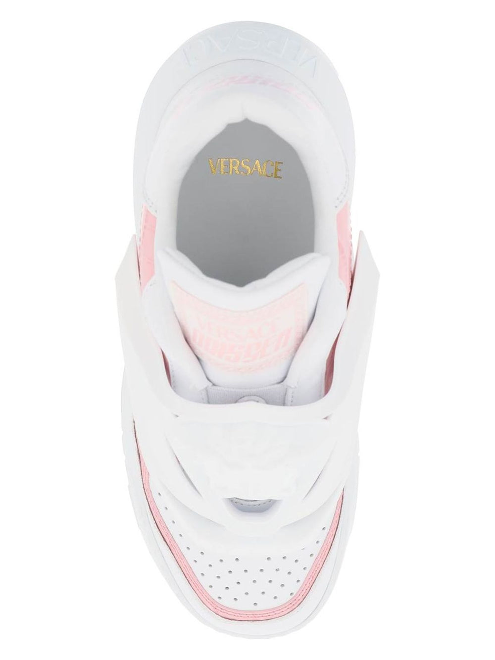 Step up your style game with these ODISSEA slip-on sneakers by Versace. Crafted in smooth leather with croco-embossed leather inserts, these sneakers are perfect for adding a touch of luxury to any casual look.