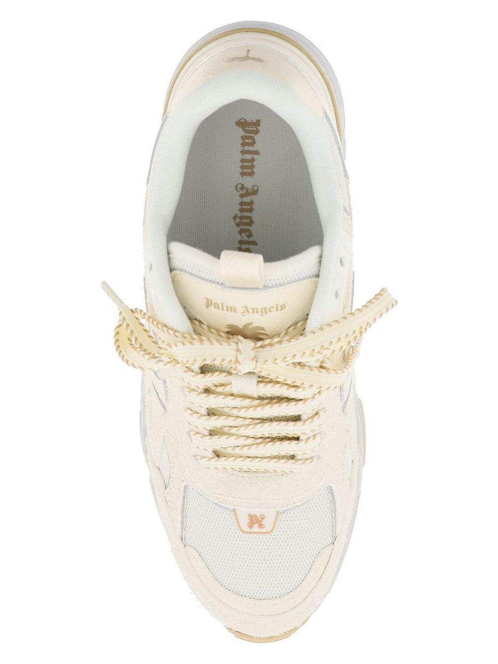 Step up your sneaker game with the Palm Runner sneakers by Palm Angels. Made of suede leather with mesh and rubber inserts, these sneakers are as stylish as they are comfortable. The iconic contrasting leather palm on the side and hammered leather spoiler with embossed logo add a unique touch to these must-have kicks.