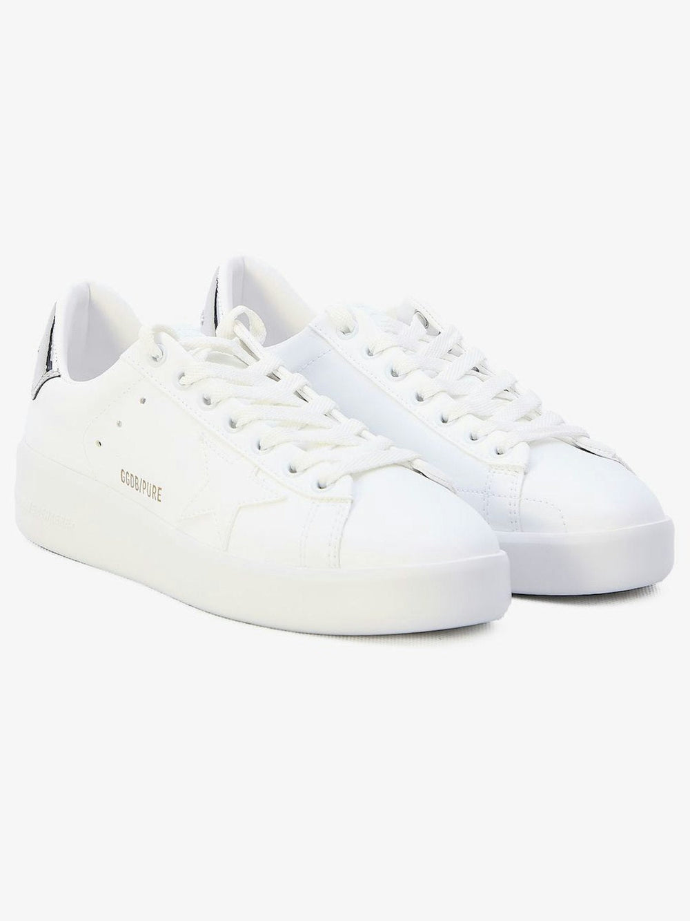 PURE NEW SNEAKERS IN WHITE BIO-BASED MATERIAL WITH SILVER-TONE MIRROR-EFFECT LAMINATED HEEL. THEY FEATURE ROUND TOE, LACE-UP CLOSURE, SIDE STAR, EMBOSSED GOLDEN GOOSE AT THE BACK AND RUBBER SOLE. ITA SIZE. SIZE NATIONALITY: IT