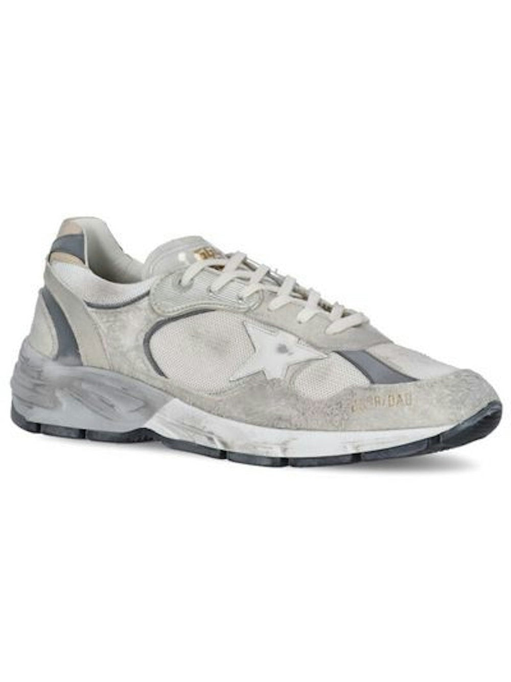 RUNNING DAD SNEAKERS IN WHITE AND GREY SUEDE WITH WHITE LEATHER SIDE STAR. THEY FEATURE PVC AND SUEDE TONGUE WITH GOLD-TONE GGDB LOGO, INSOLE WITH DAD-STAR LOGO, LACE-UP CLOSURE AND CHUNKY RUBBER SOLE. VINTAGE AND DISTRESSED TREATMENT. ITA SIZE. SIZE NATIONALITY: IT