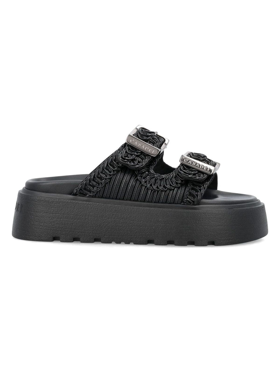 Step out in style with these slip-on mules that feature a unique decorative upper texture and a high sole for a trendy look. The two buckle closure adds a touch of edginess to this effortlessly cool pair of shoes.