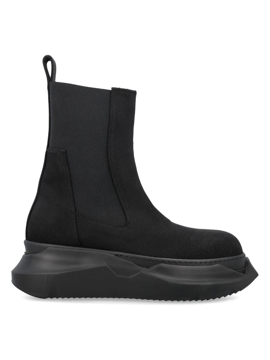 Step up your shoe game with the BEATLE ABSTRACT boot by Rick Owens DRKSHDW. These boots feature a cotton upper, elasticated side panels, a back pull tab, and a round toe for a comfortable fit. The voluminous abstract rubber sole adds a unique and edgy touch to any outfit.