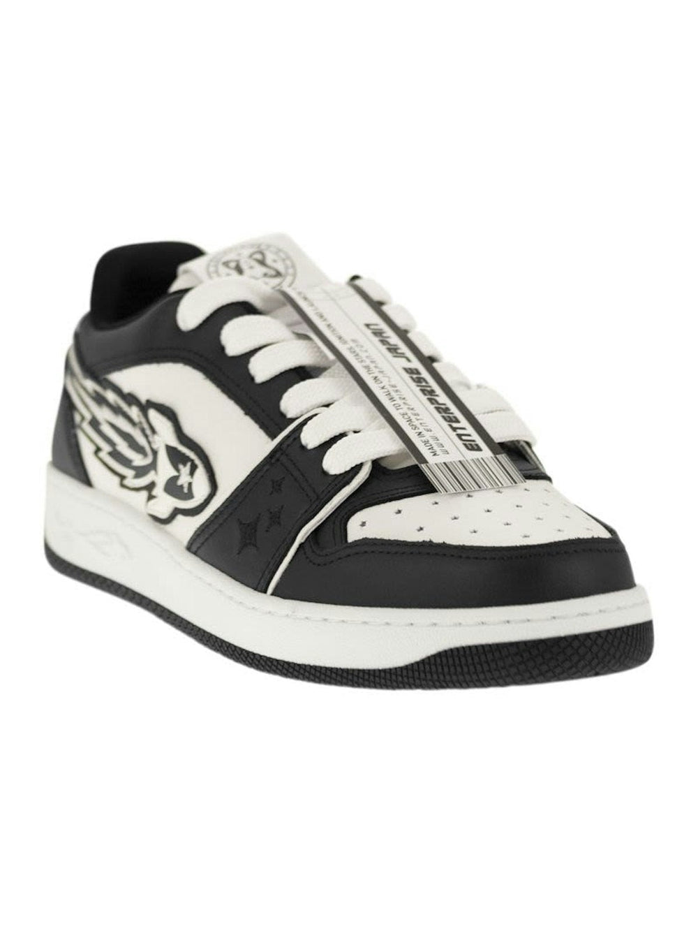 THE URBAN-INSPIRED EJ ROCKET TRAINERS ARE DESIGNED TO ENSURE UNIQUE STYLE AND COMFORT. MADE OF LEATHER, IT IS ENRICHED BY THE UNMISTAKABLE EJ ROCKET LOGO, EMBROIDERED ON THE UPPER WITH OVER 2,700 MACHINE STITCHES AND ON THREE DIFFERENT LAYERS OF LEATHER. THE LIGHTWEIGHT THERMOPLASTIC SOLE IS CUSTOMISED LATERALLY WITH EMBOSSED GRAPHICS AND IS ENGRAVED WITH THE ICONIC EJ ROCKET ON THE TWO-TONE BOTTOM. - COTTON LACES - MADE IN ITALY DESIGNER ID: BB4001P010200054 SOLE HEIGHT: 3.5 CM