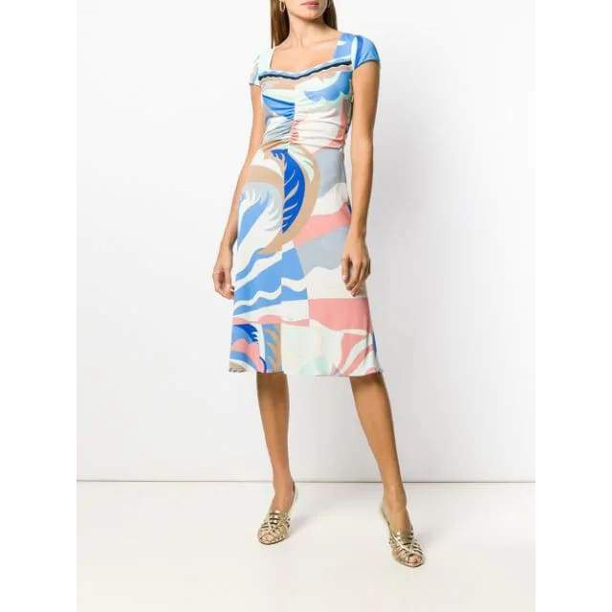 Crafted in Italy from silk-blend jersey, the piece features cap sleeves, a ruched bodice, and a slim skirt.