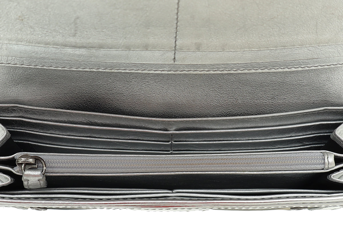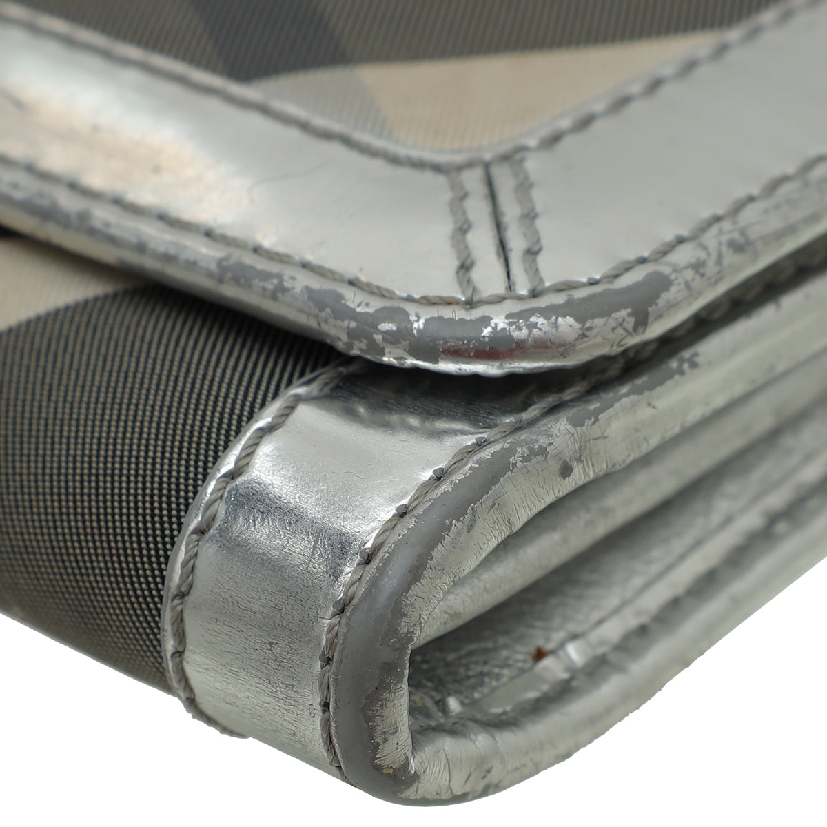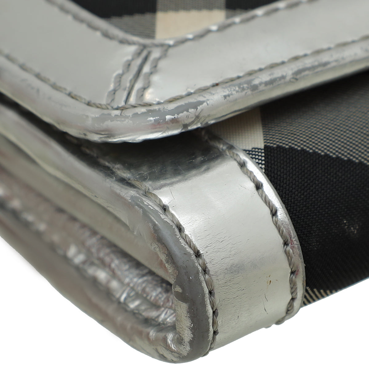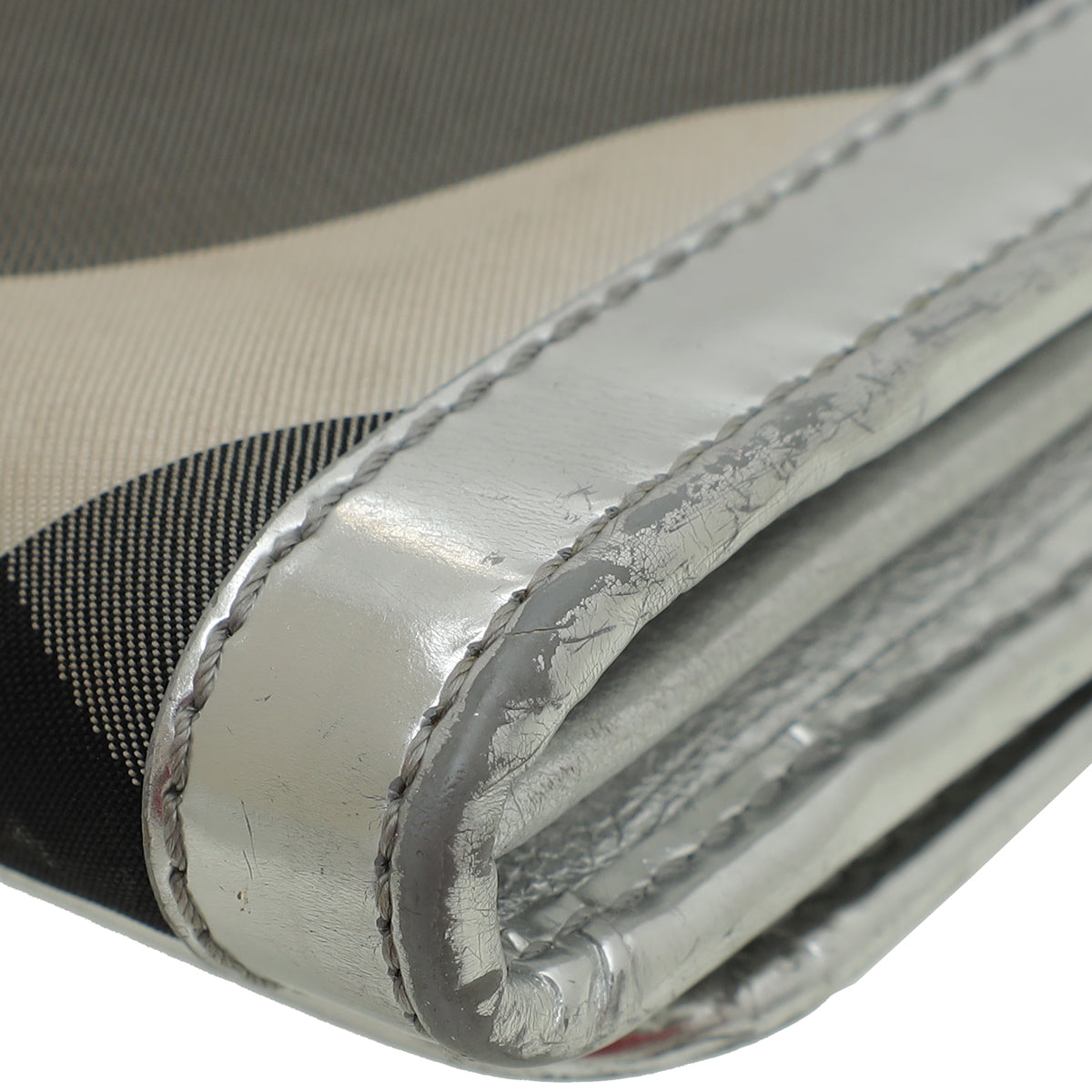 • Material: Grey Nova Check Canvas with Metallic Silver Leather