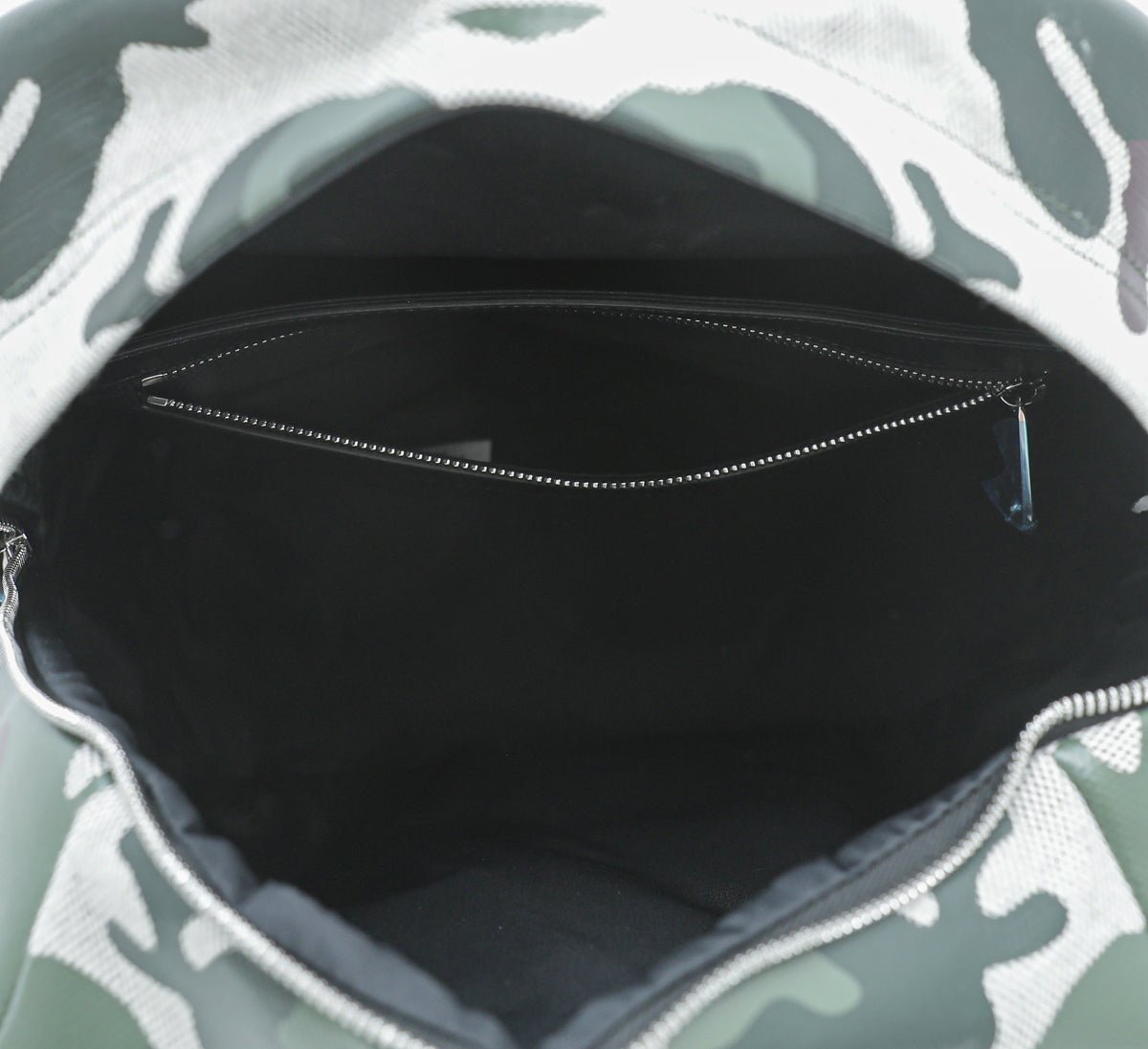 - Material: Camouflage Print Canvas with Black Leather Trim