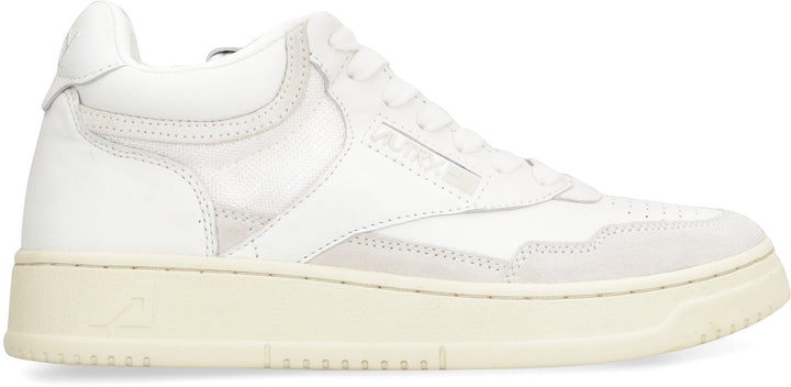 Elevate your sneaker game with these stylish mid-top sneakers. Made with a combination of high-quality materials including suede inserts, mesh inserts, and 100% goatskin, these sneakers are as comfortable as they are fashionable. The round toeline adds a modern touch, while the 100% rubber sole provides durability and traction. Whether you're headed to the gym or out for a casual day around town, these sneakers are the perfect choice for a cool and effortless look.