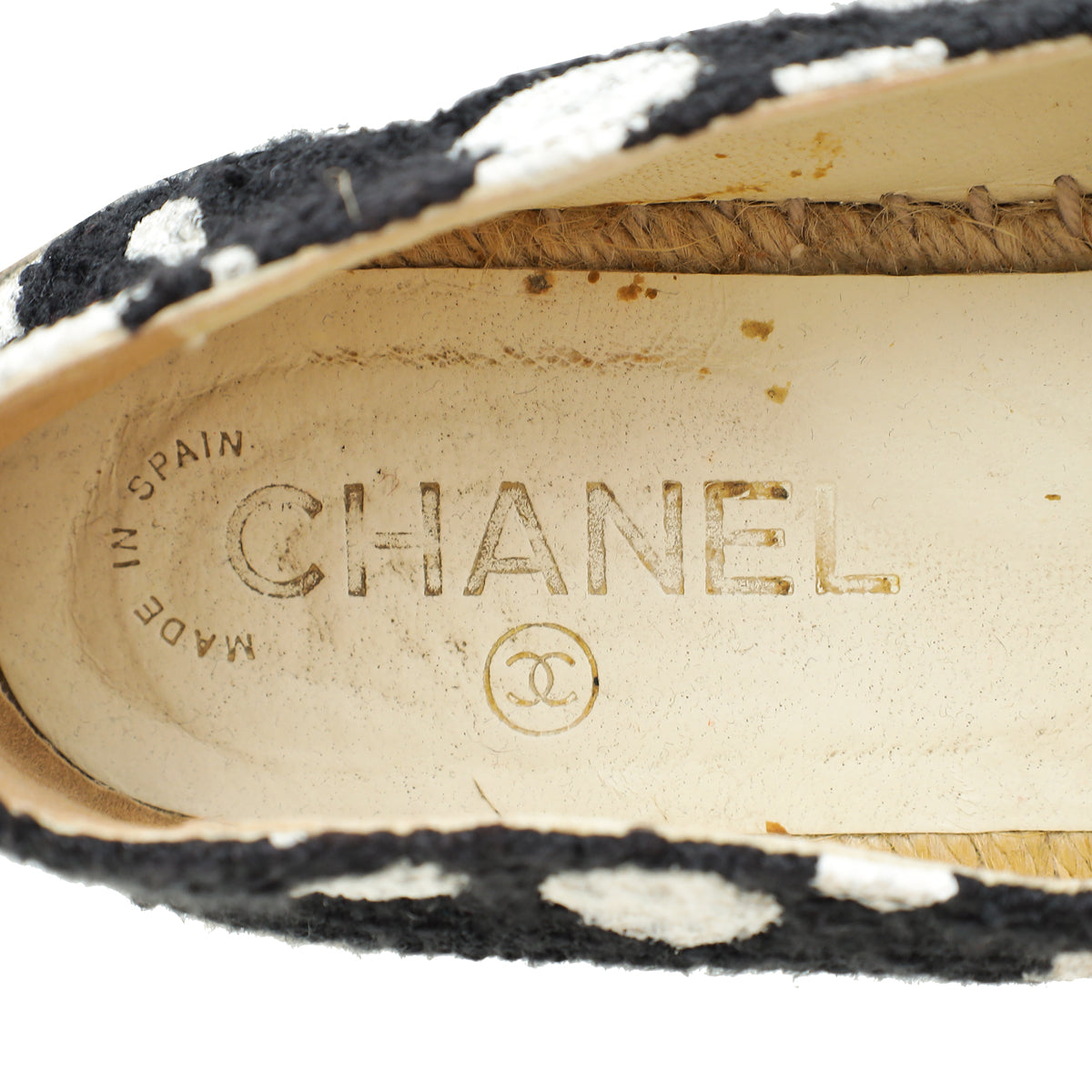 - Material: Black/White Tweed Print and Black Patent Leather Cap Toe with CC Logo