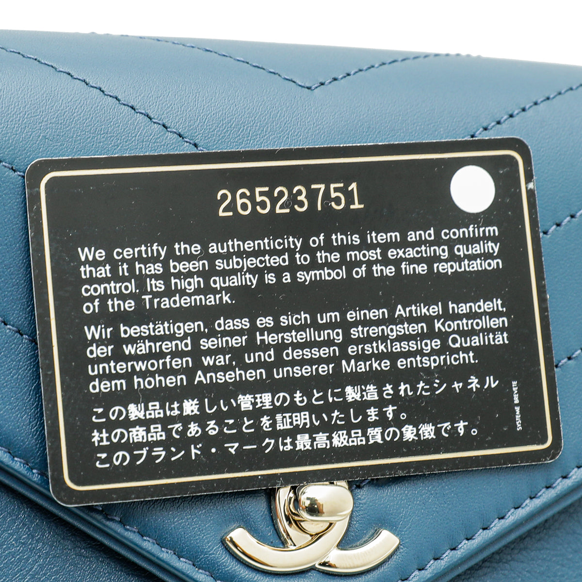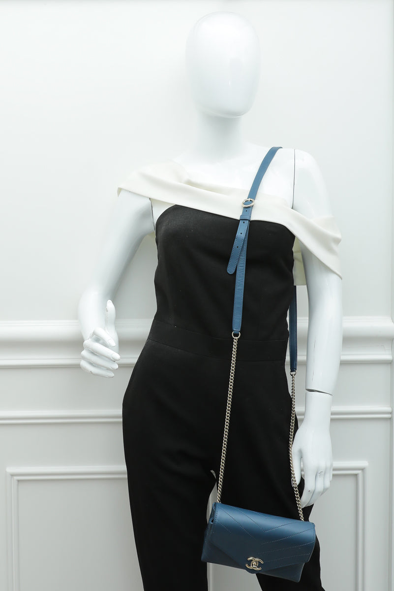 - Material: Blue Chevron Quilted Lambskin Leather