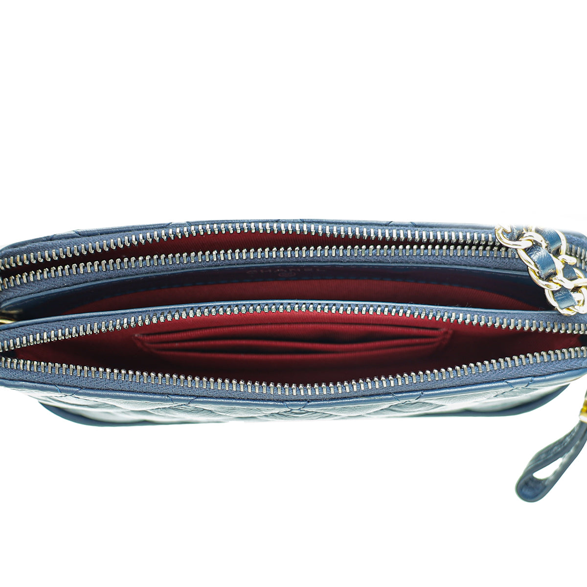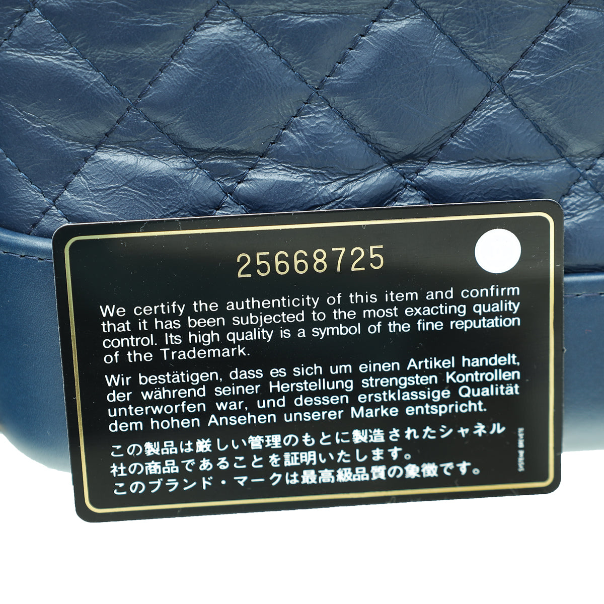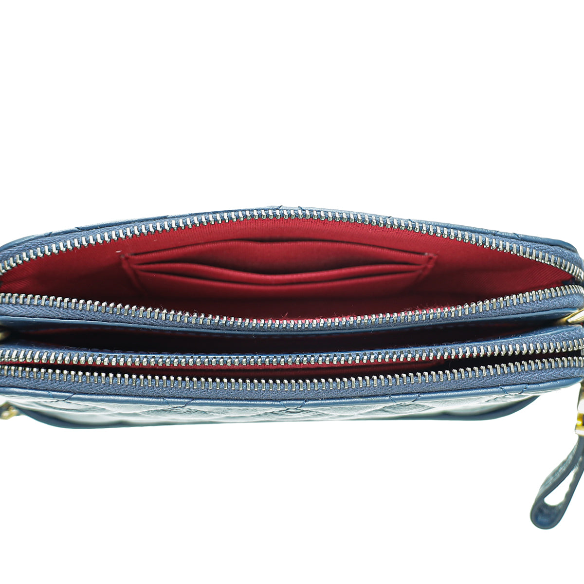 - Material: Blue Quilted Calfskin Leather with Smooth Leather Trim
