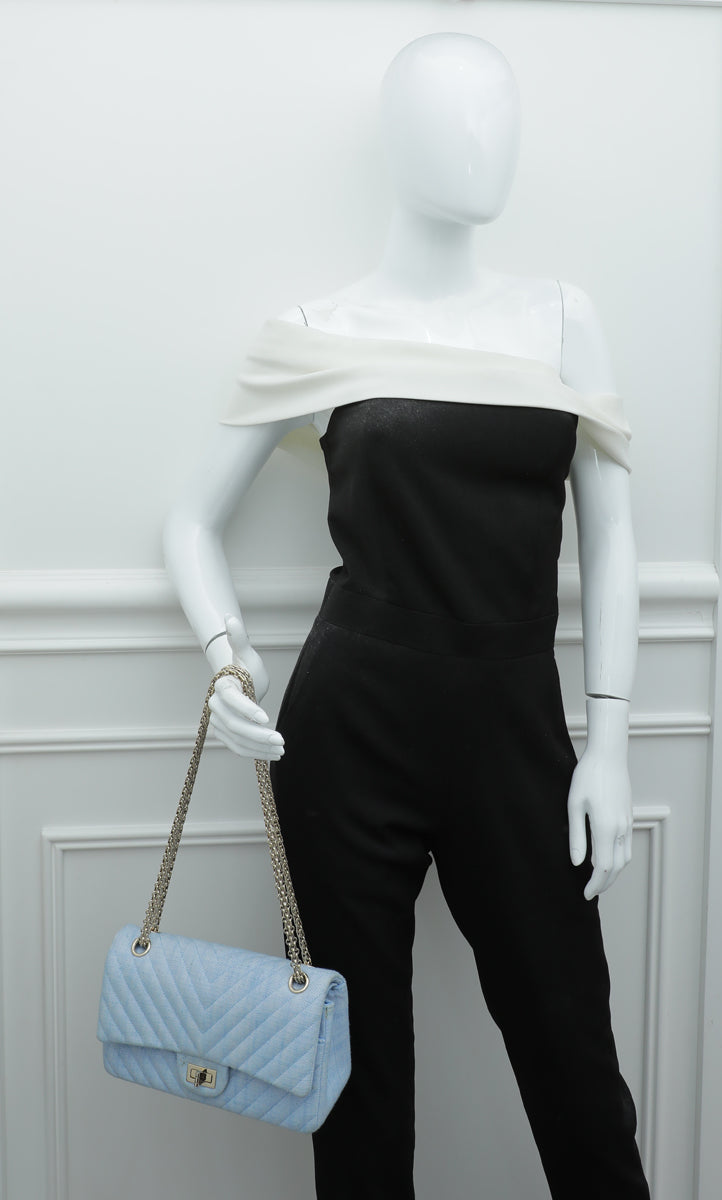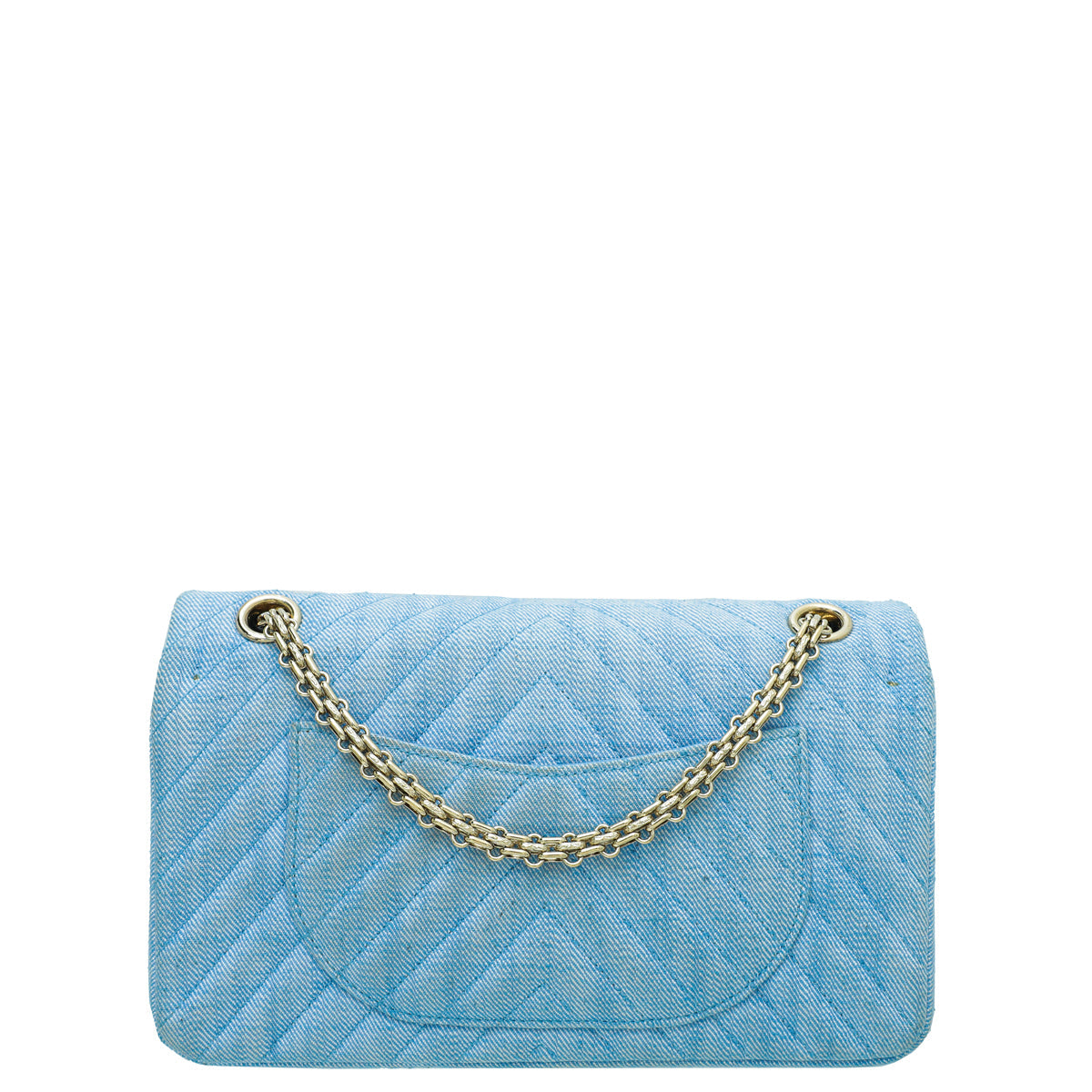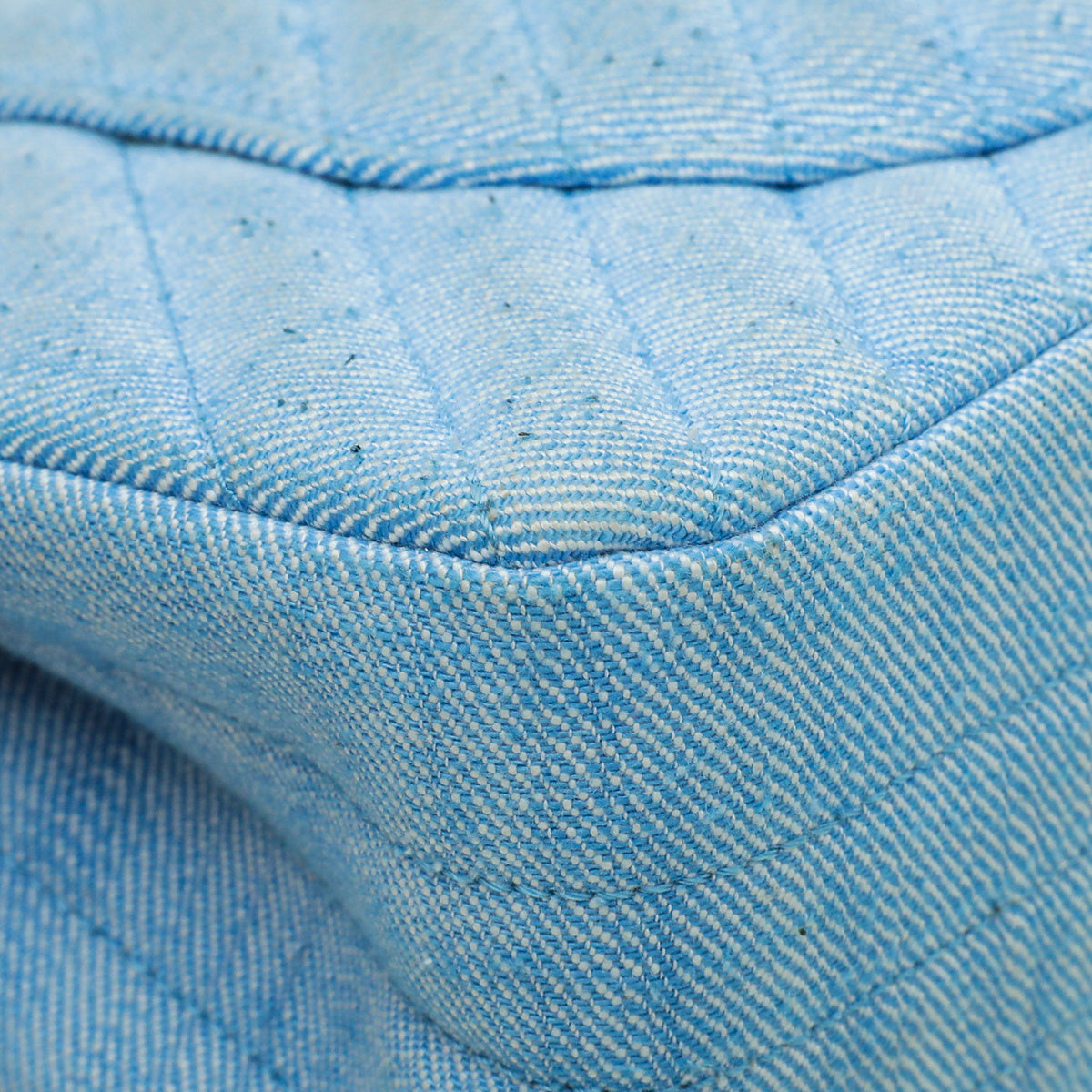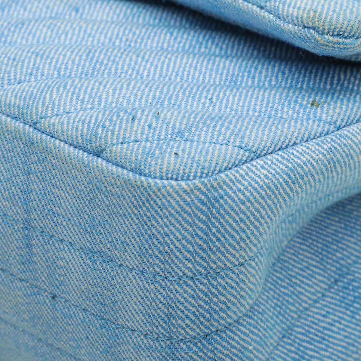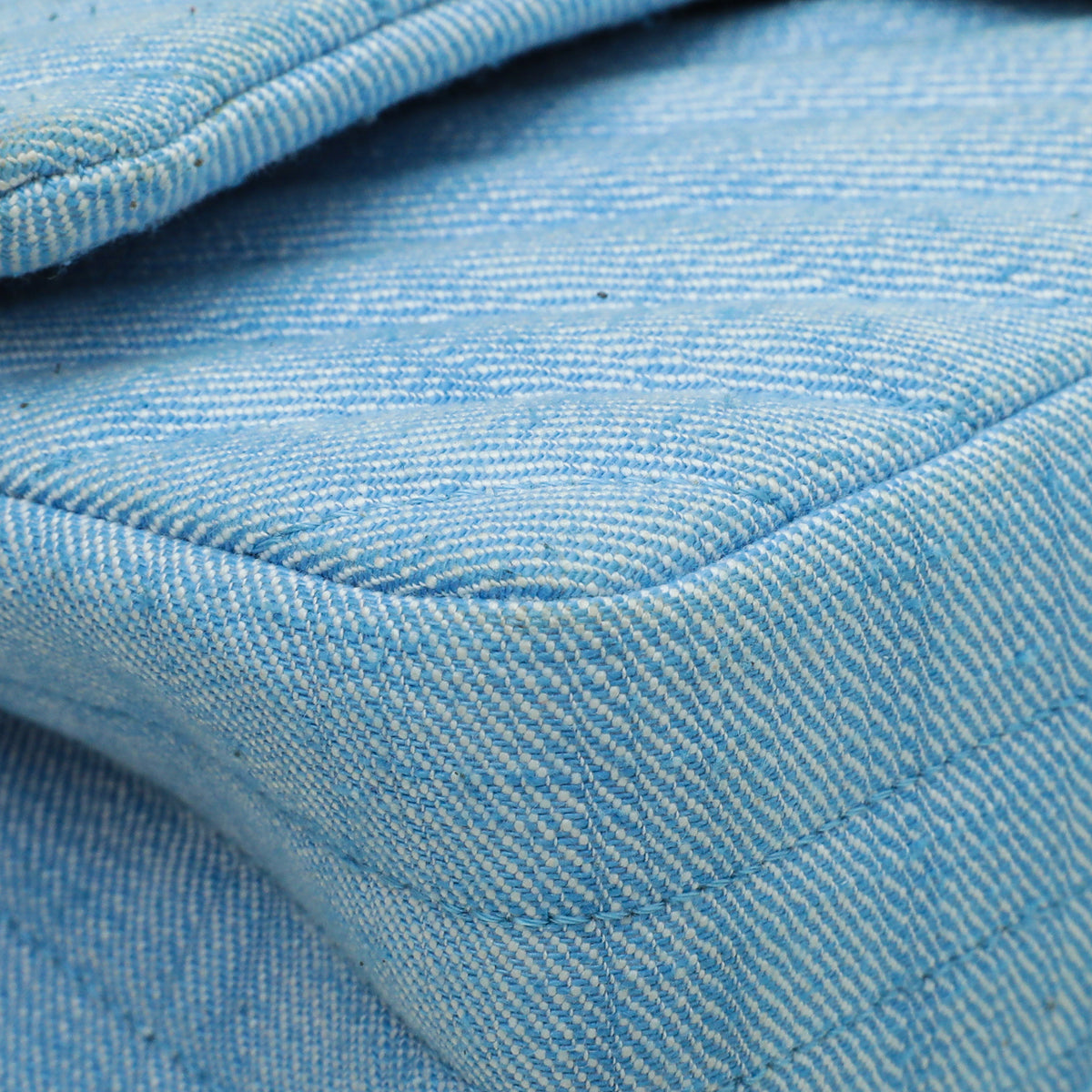 Exterior: good condition, with scratches on the hardware, spots on denim and showing normal signs of use.