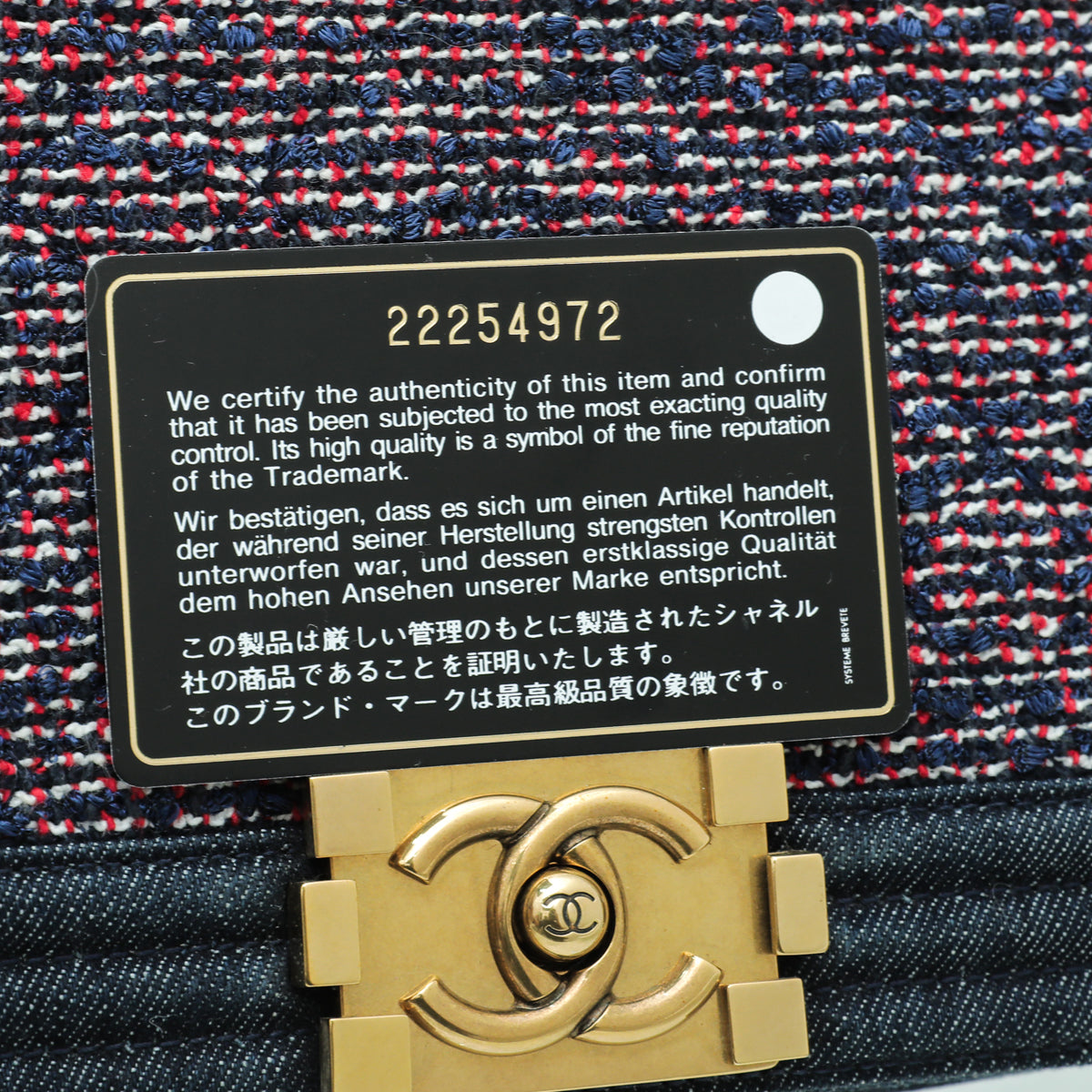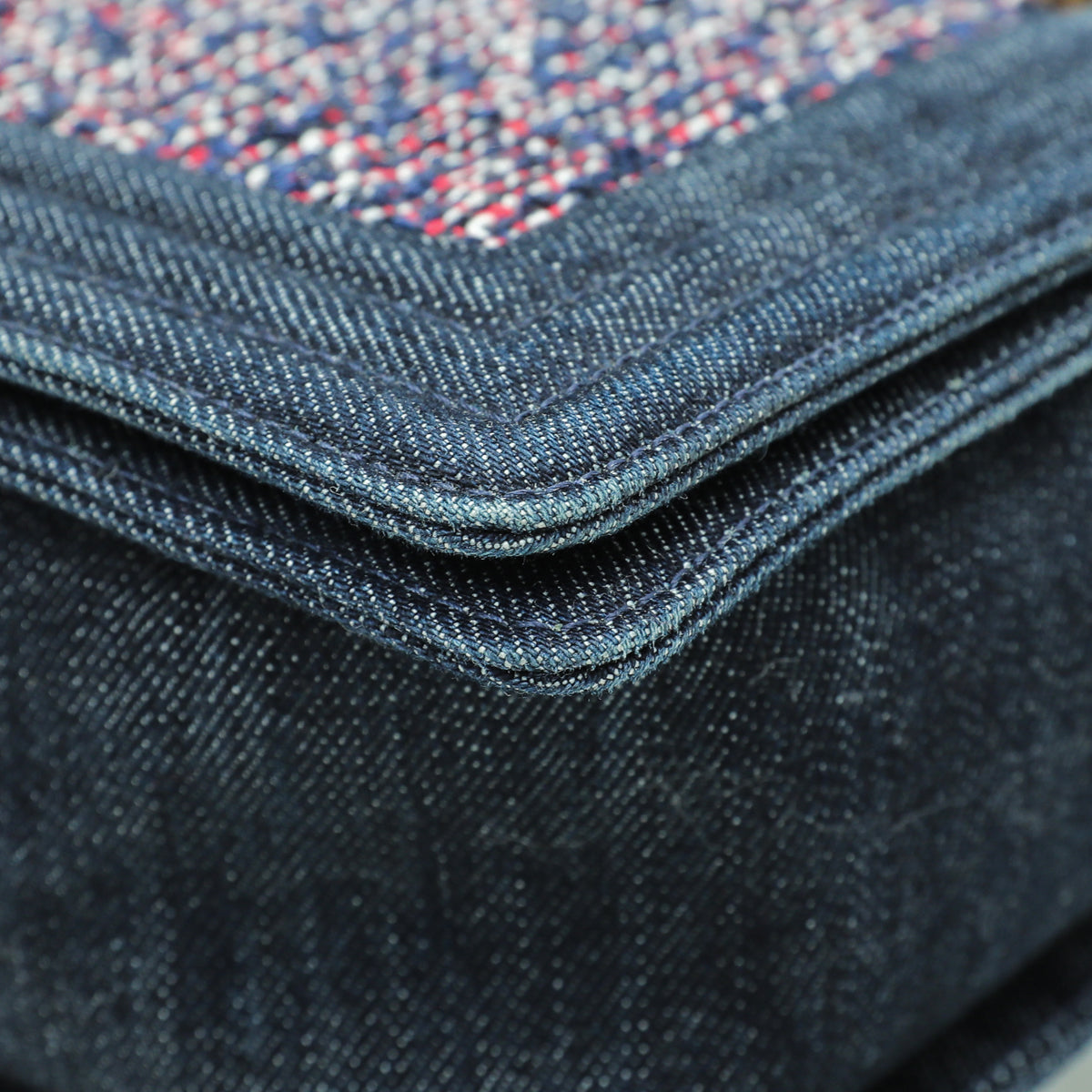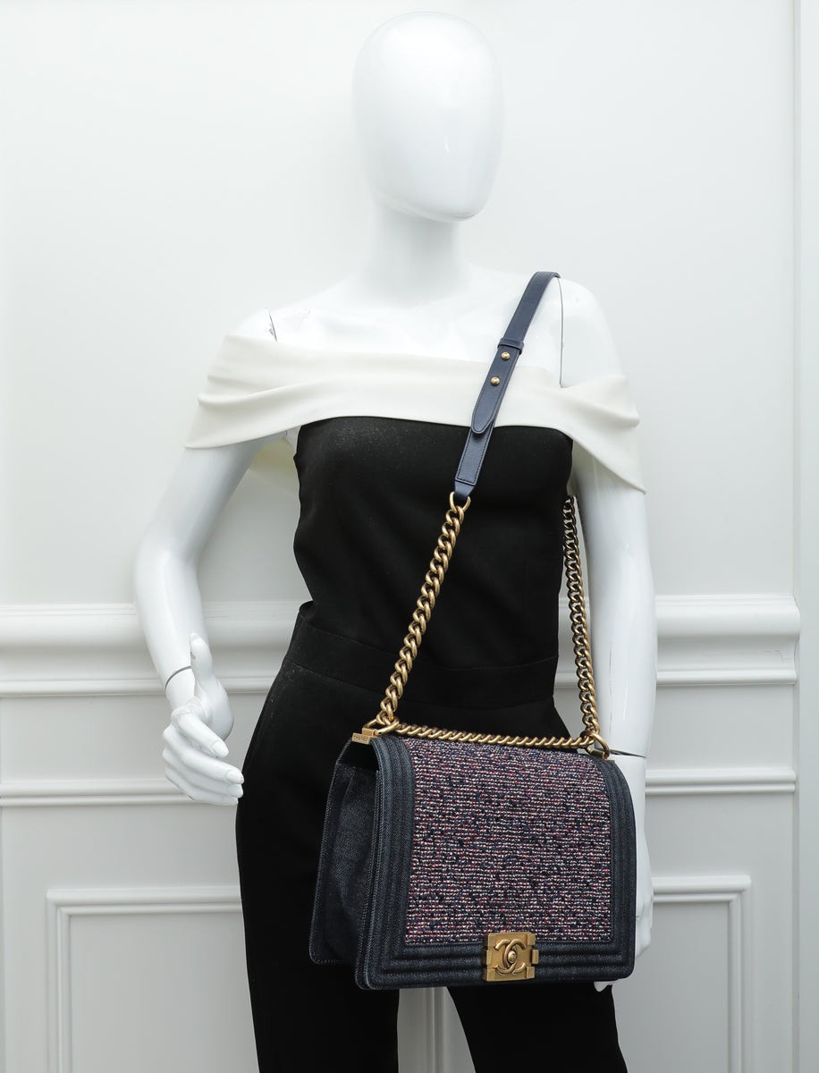 - Material: Navy Blue Denim and Tweed