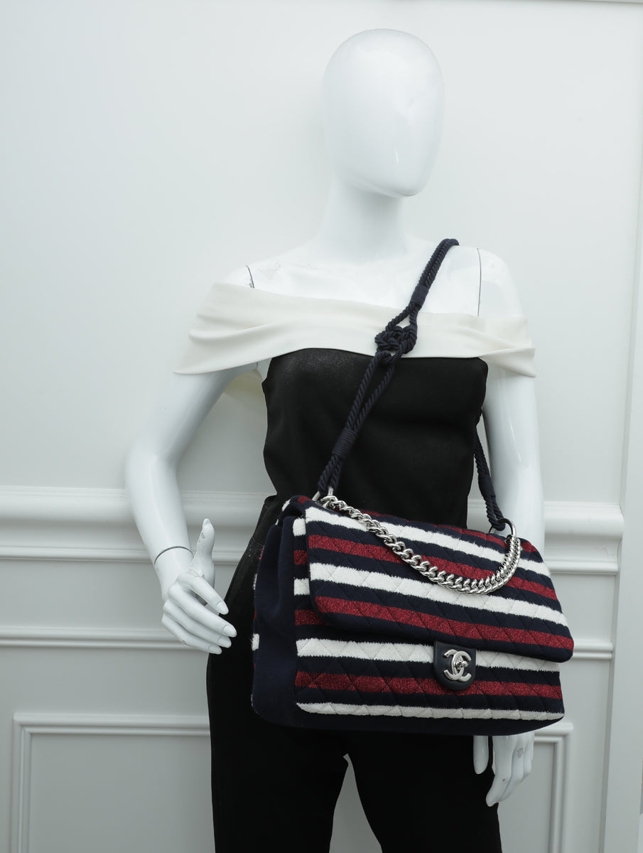 - Material: Navy/Red/White Quilted Jersey