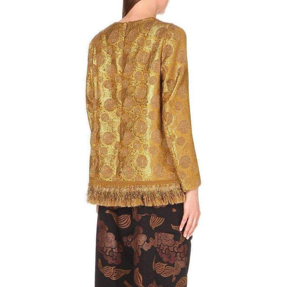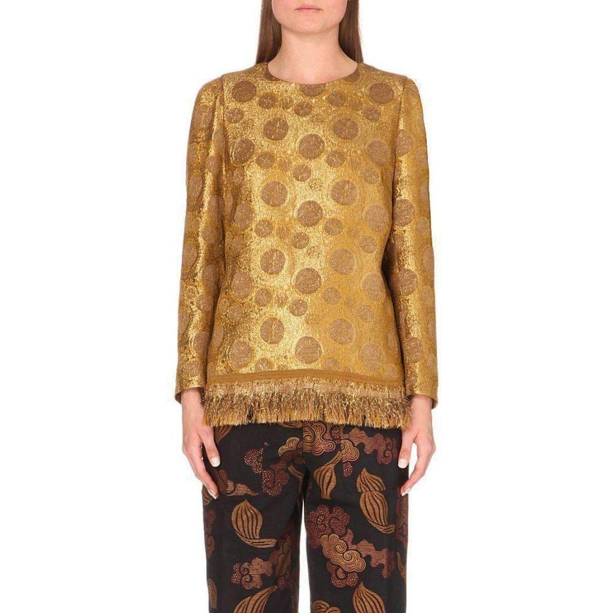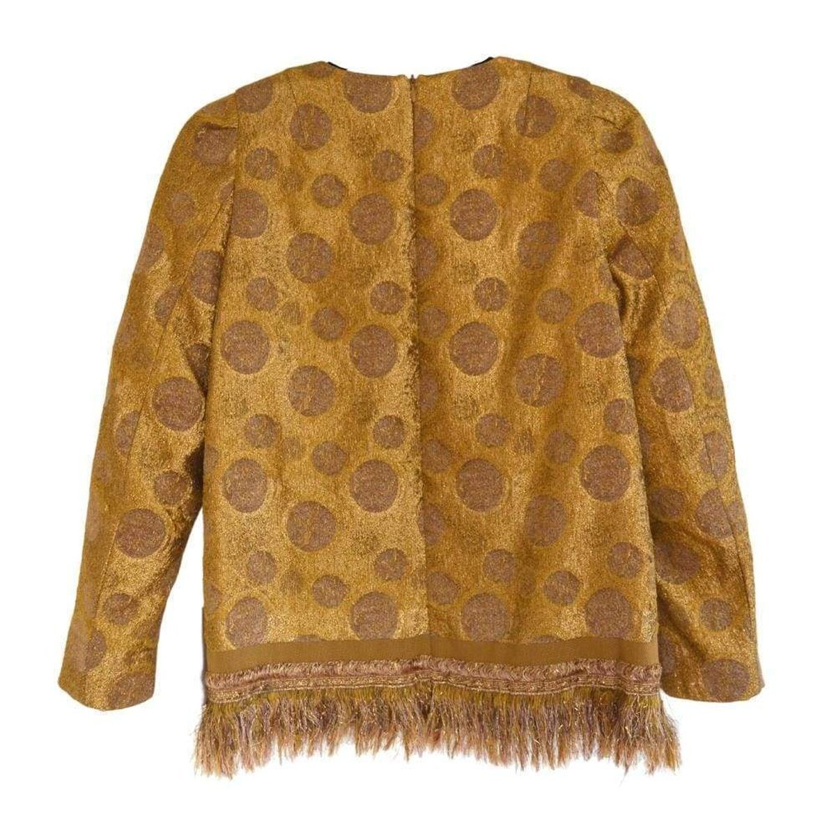 Round neck, long sleeves, darts at front, all-over polka-dot pattern, textured, tasselled trims, fully lined.