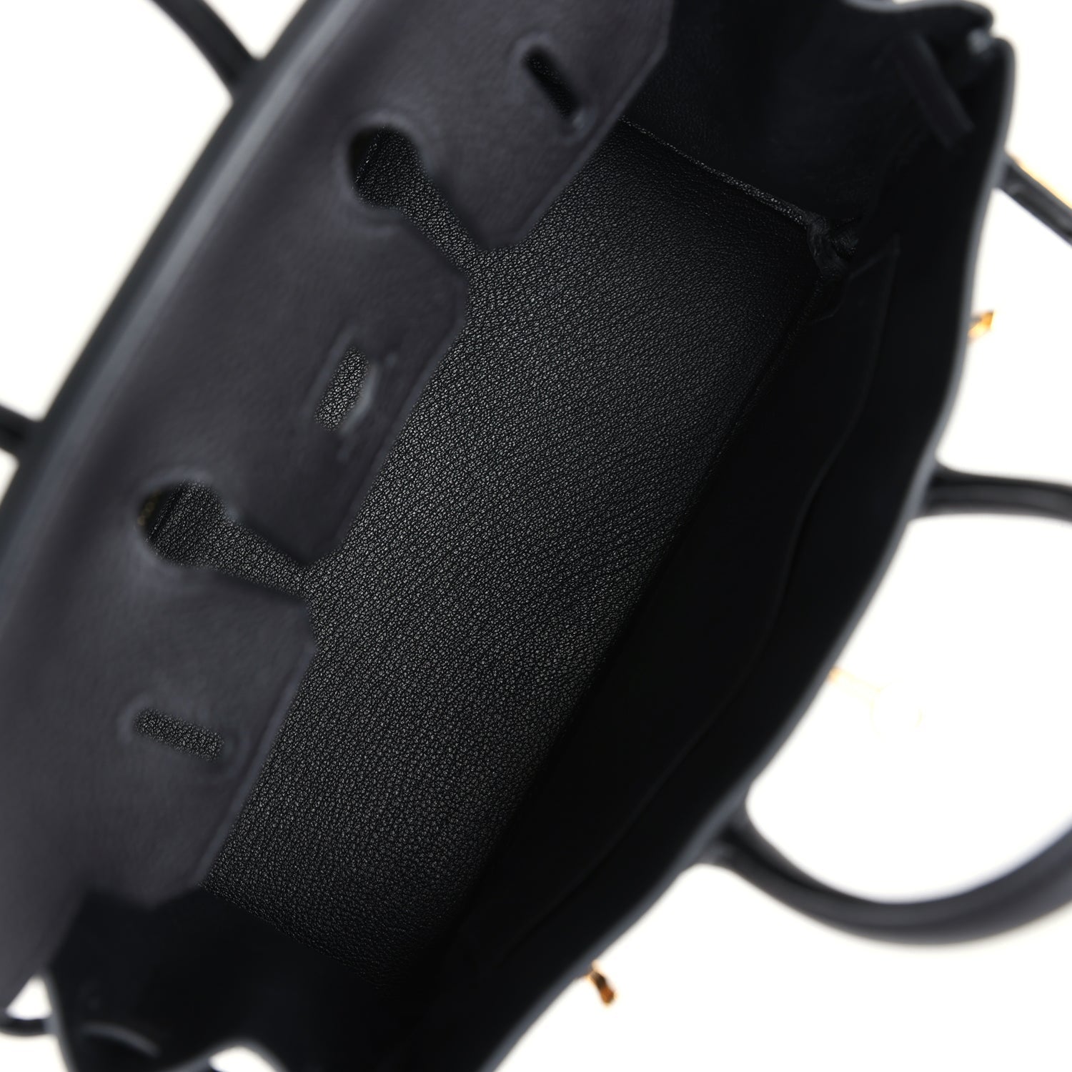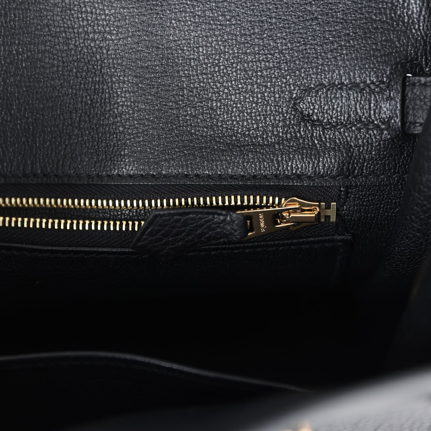 This Birkin is in Black togo leather with gold hardware and has tonal stitching, front flap, two straps with center toggle closure, clochette with lock and two keys, and double rolled handles.