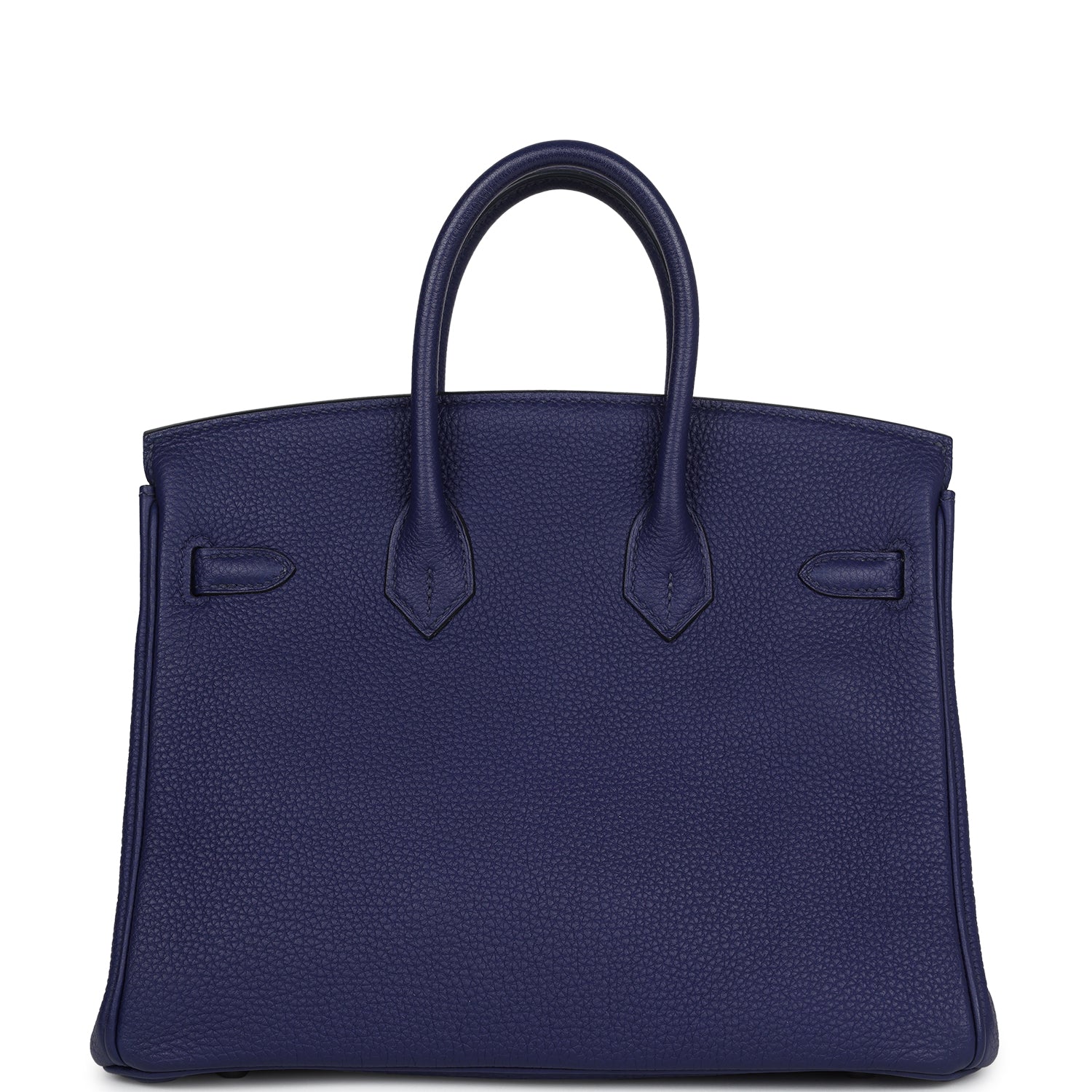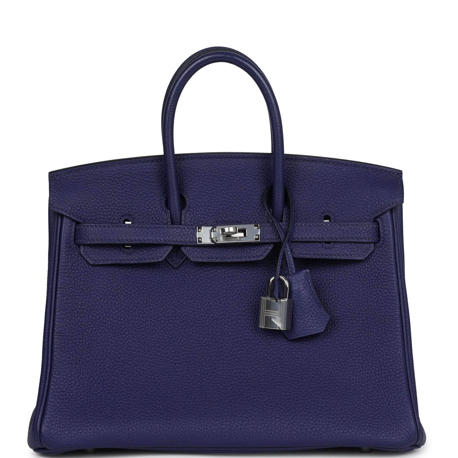 This Birkin is in Bleu Encre togo leather with palladium hardware and has tonal stitching, two straps with front toggle closure, clochette with lock and two keys and double rolled handles.