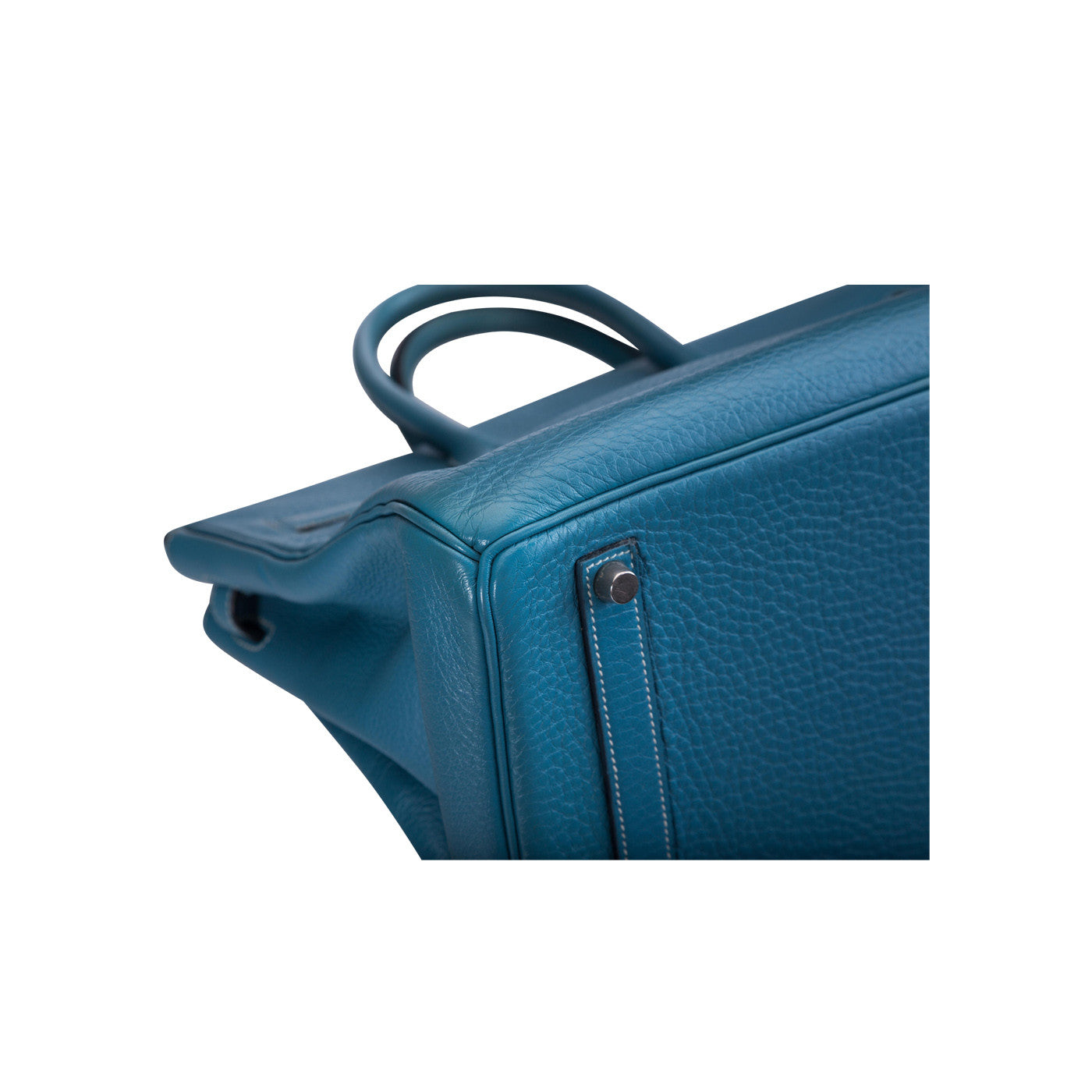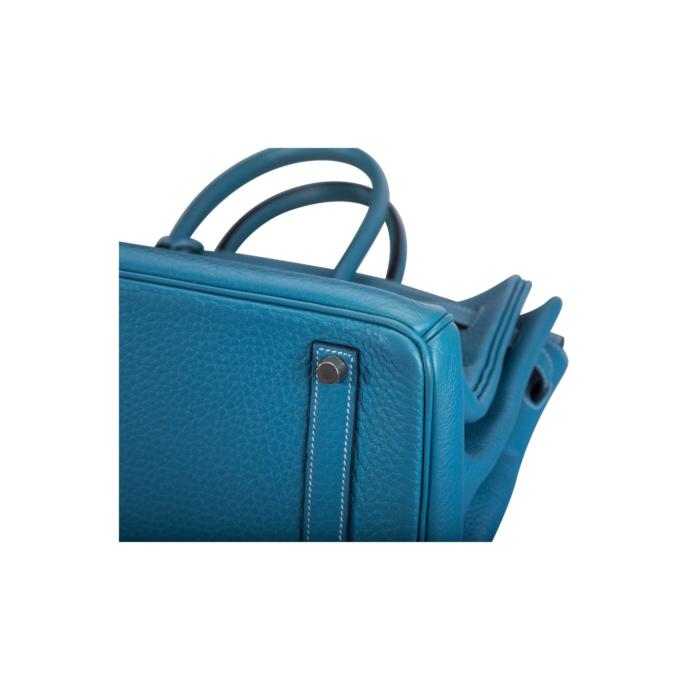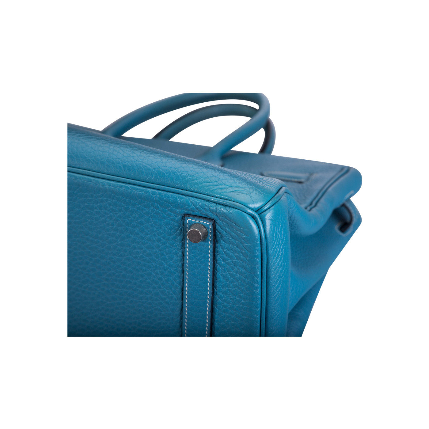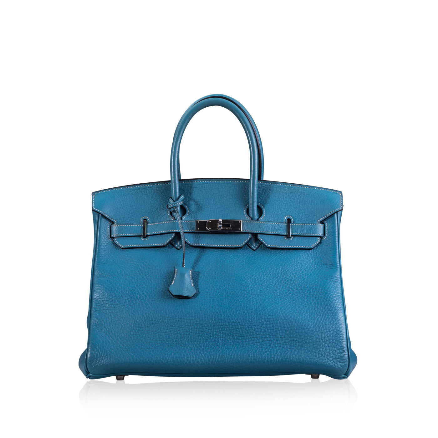This Birkin 35 is the perfect size to carry everything you need, and comes in a stunning summer blue. The palladium hardware is modern and fresh for 2017. The Hermès Birkin is among the most famous bags in the world. First created in 1983 after Jean-Louis Dumas met Jane Birkin on a flight from Paris to London. In the short flight, Birkin explained that she needed a bag which was spacious enough for everything she needed to carry, with plenty of pockets as well. He sketched the first bag there and then, and the rest is history. Thirty-four years later, this bag has been created in a huge variety of styles and materials.