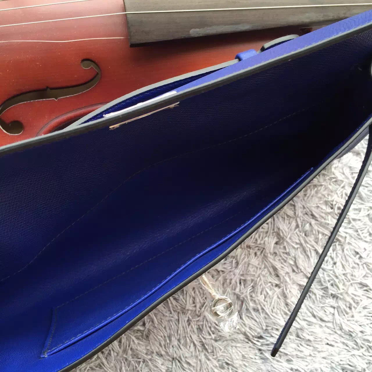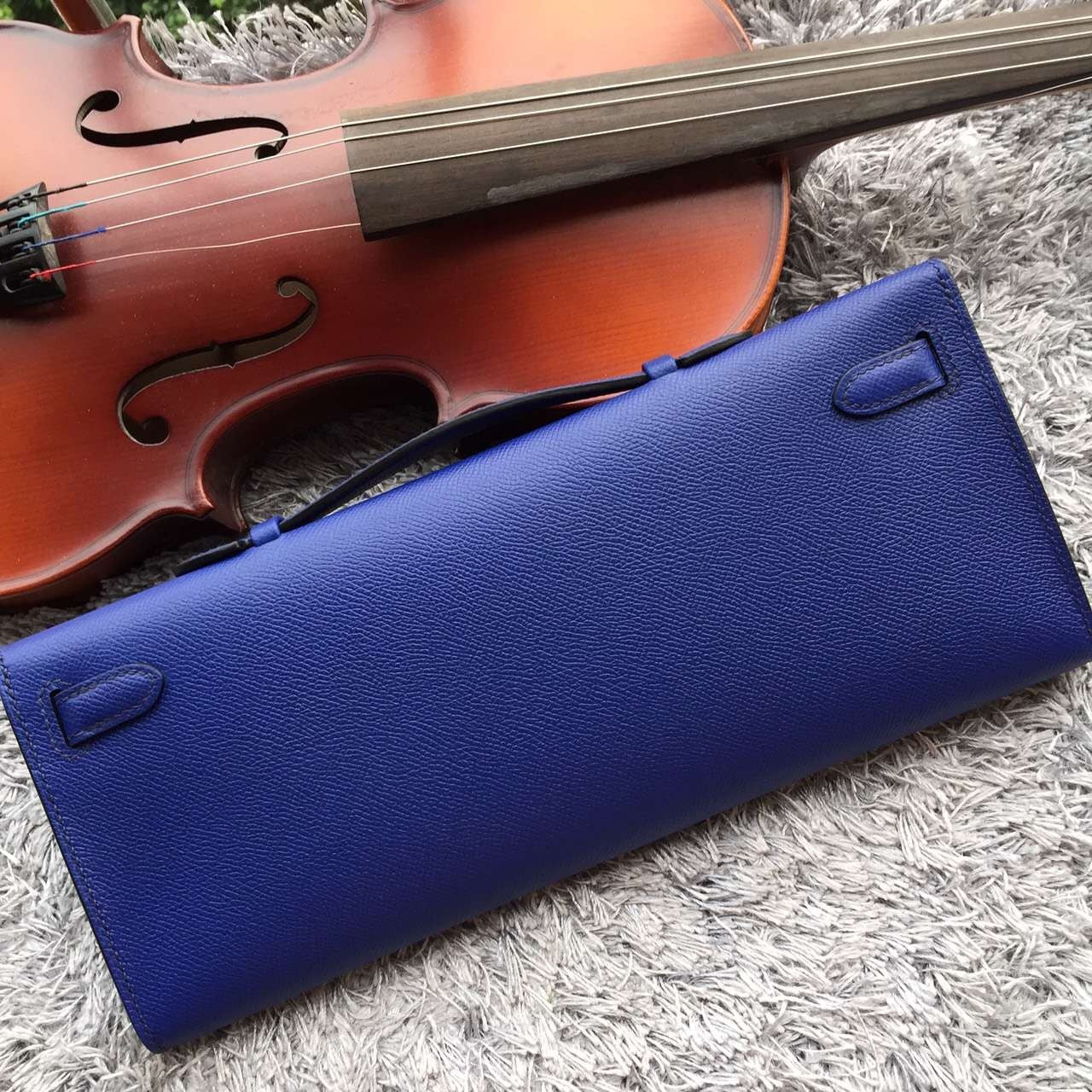 Hermes Blue Handcrafted Kelly Cut Clutch