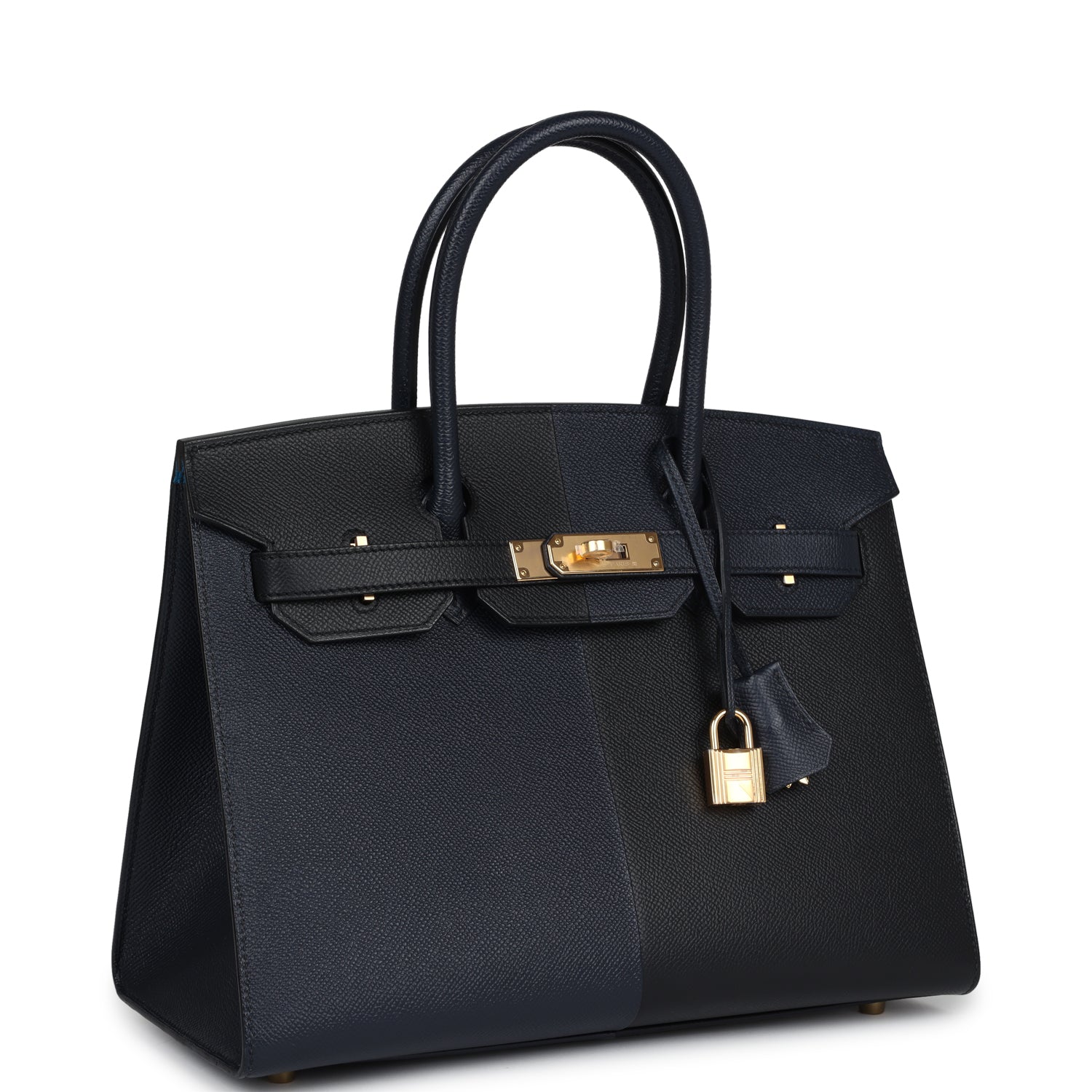 Hermes Casaque Birkin Sellier 30 Black, Bleu Indigo and Bleu Zanzibar Epsom Gold Hardware