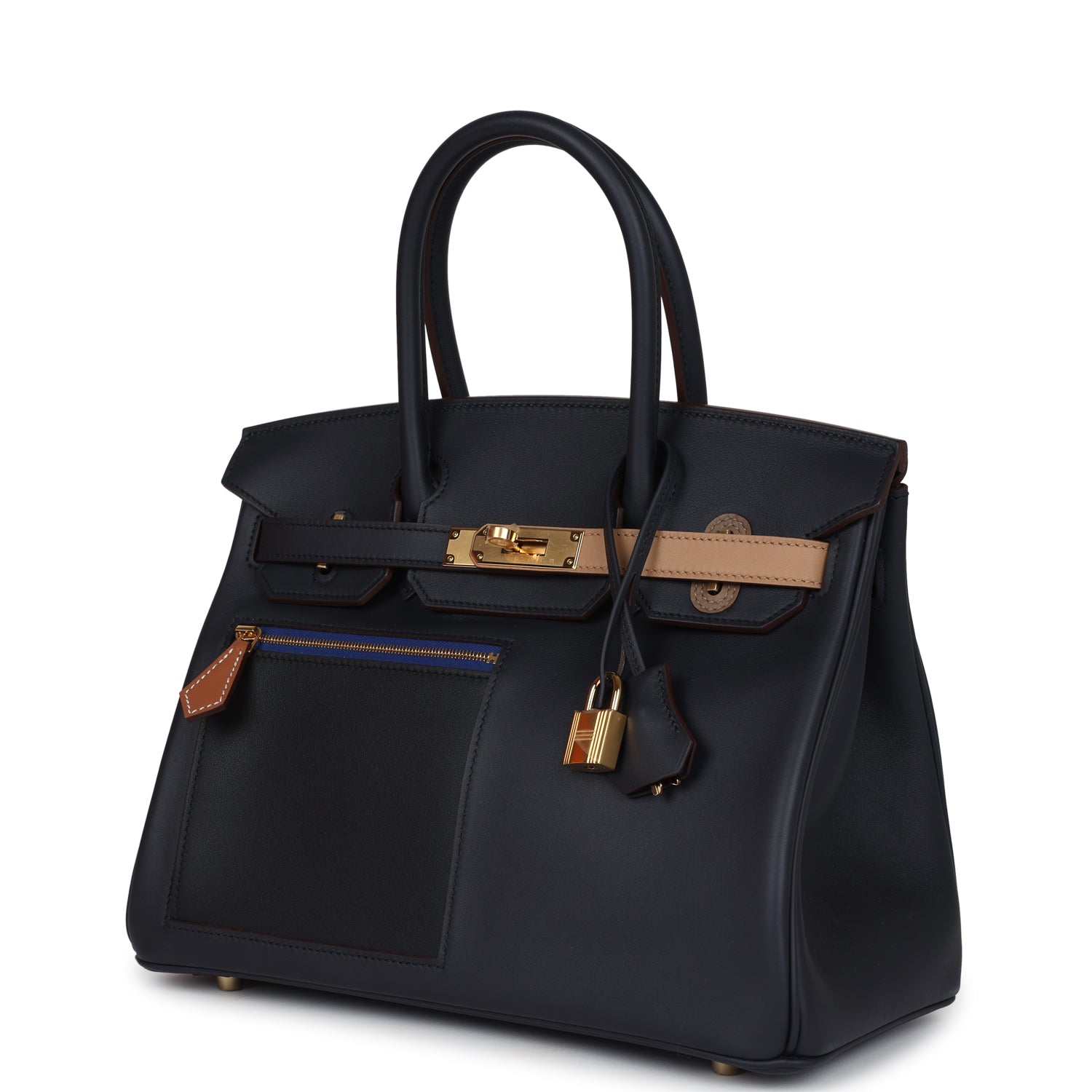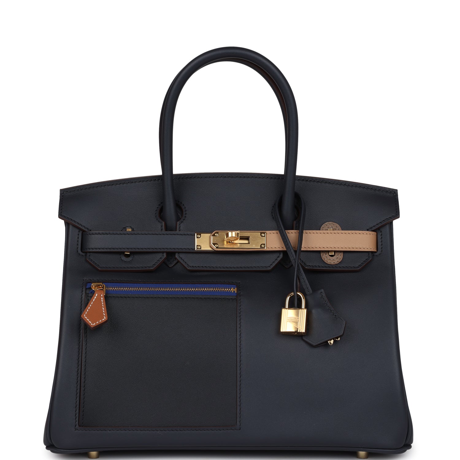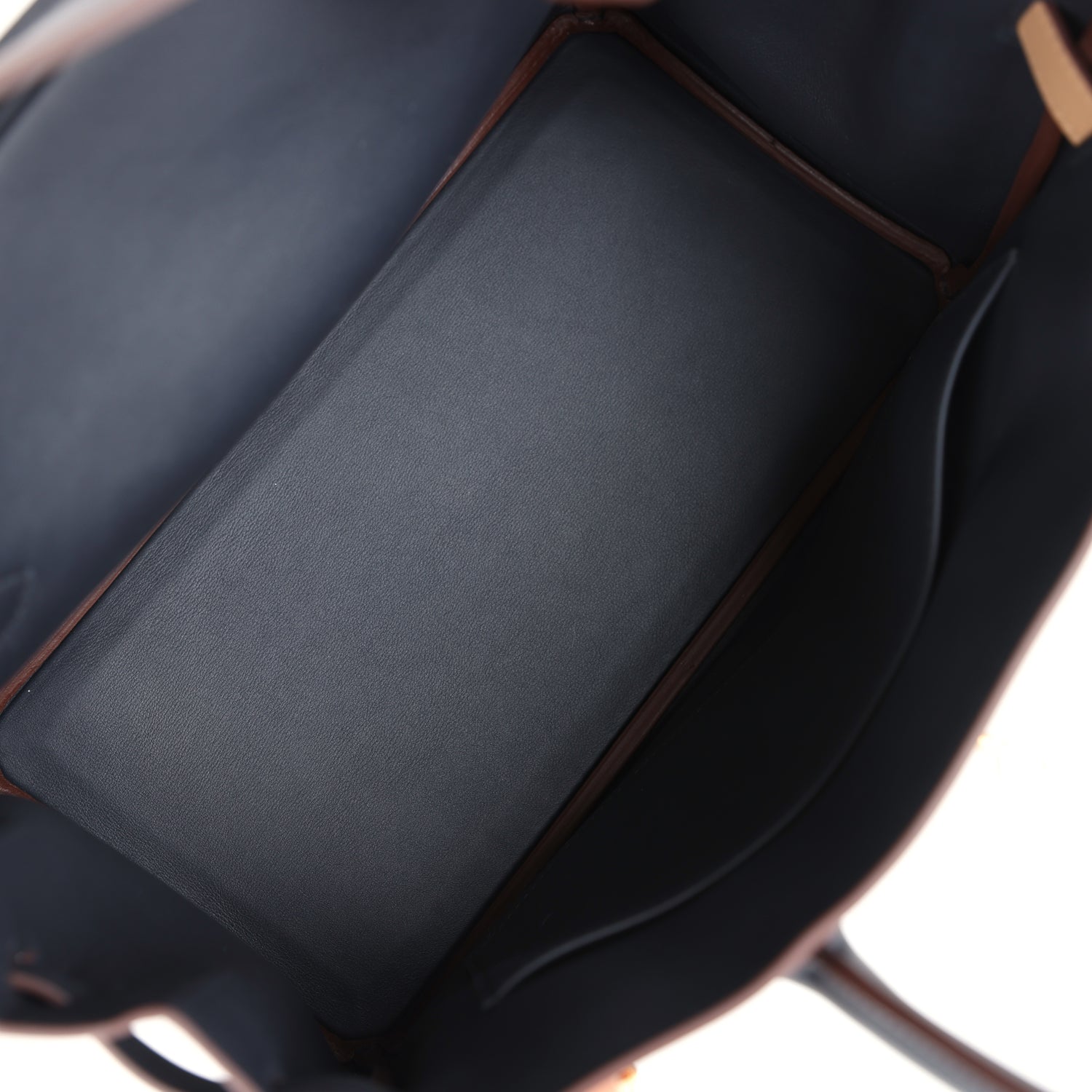 This limited edition Colormatic Birkin is in Caban, Chai and Black swift leather with gold hardware and has tonal stitching, front flap, two-tone pull straps with center toggle closure, clochette with lock and two keys, front zip pocket, back slip pocket and double rolled handles.
