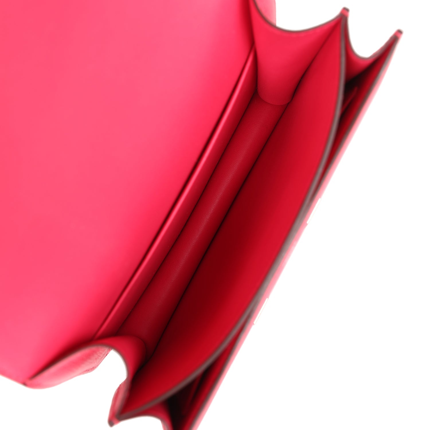This Constance is in Rose Extreme epsom leather with palladium gold hardware and has tonal stitching, a metal "H" snap lock closure and adjustable shoulder strap.