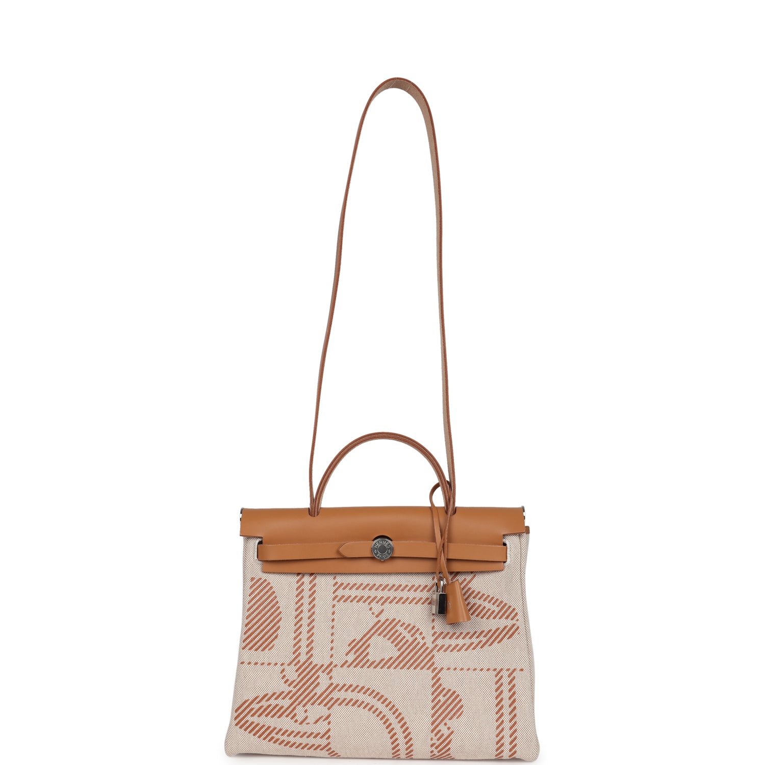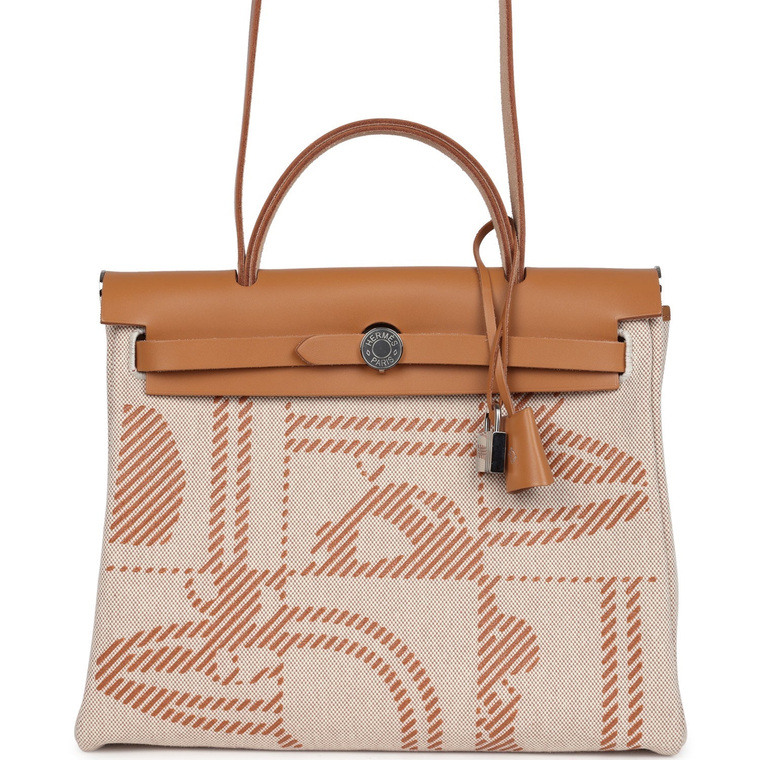 Hermes Herbag Zip PM 31 "Brides de Gala" Natural Sable Berline Hunter and Ecru Toile H Canvas Palladium Hardware