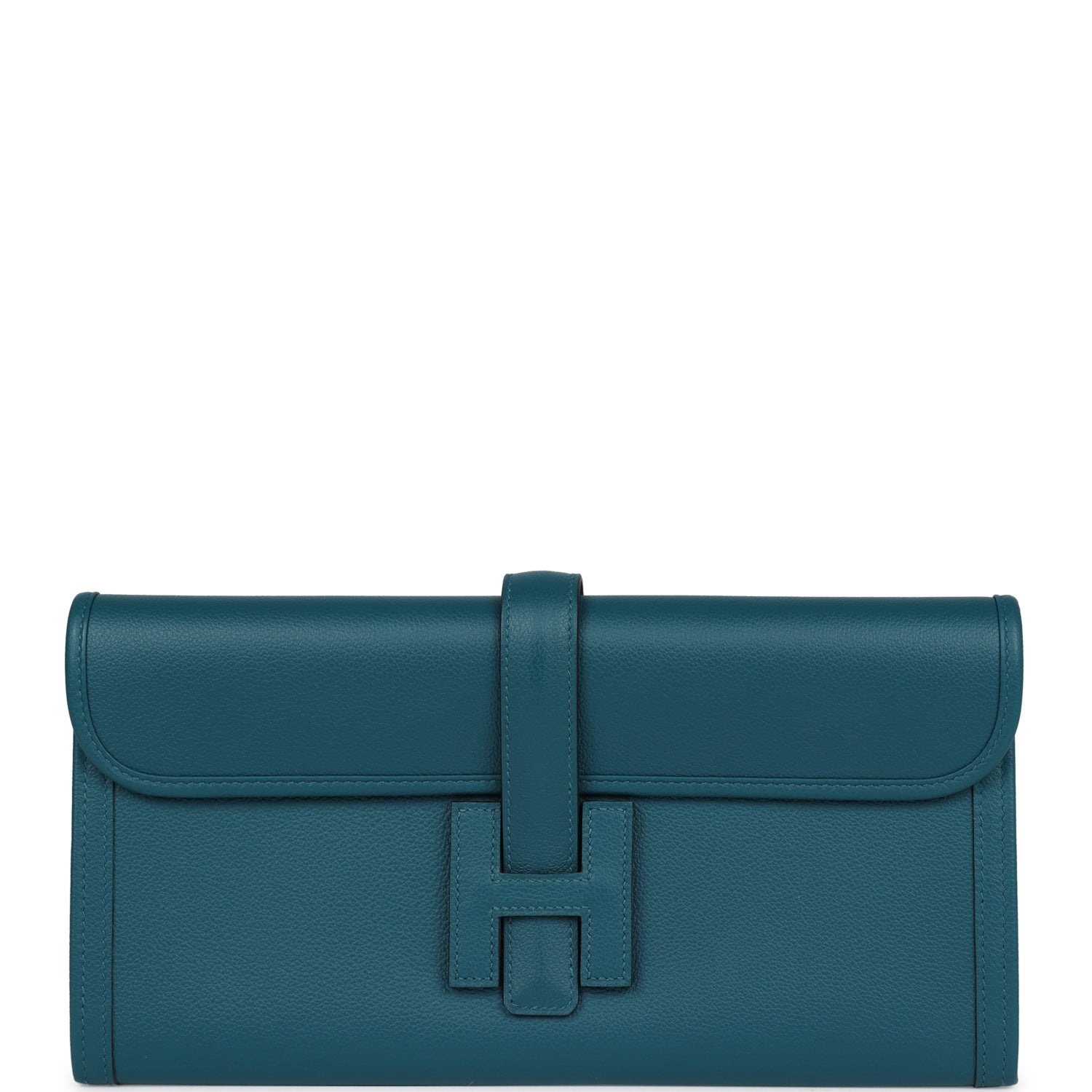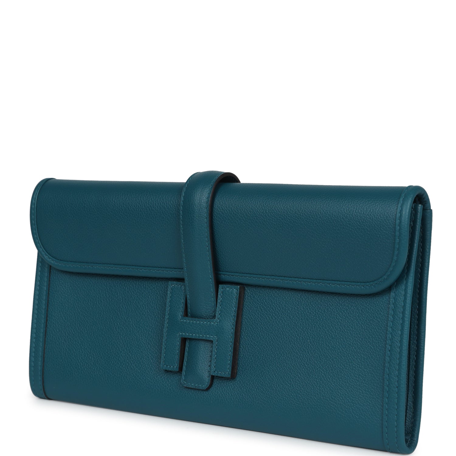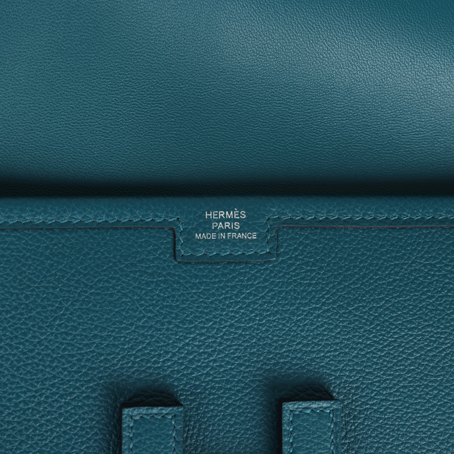 This Jige Elan is in Vert Bosphore evercolor leather and features tonal stitching and a front "H" pullover tab closure.