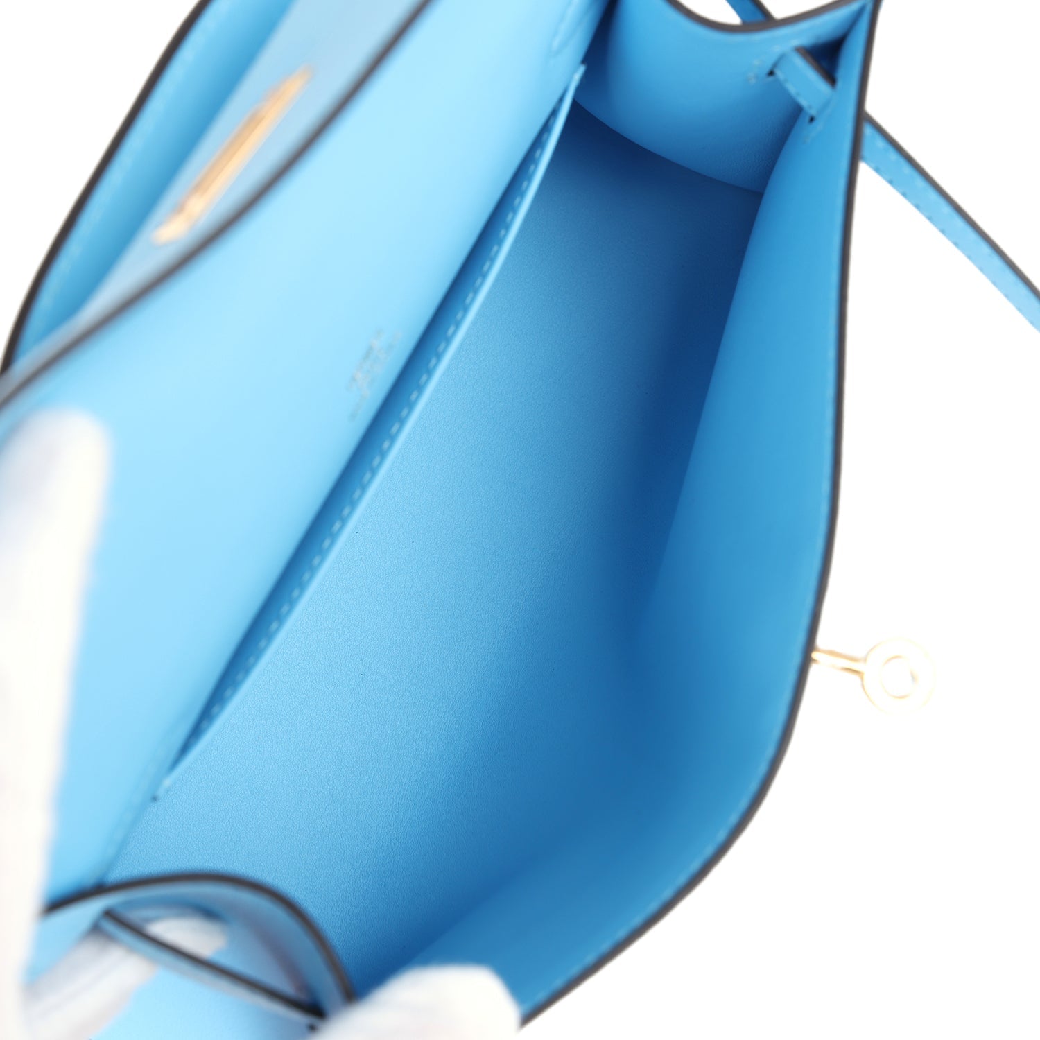 Hermes Kelly Pochette Celeste Swift Gold Hardware