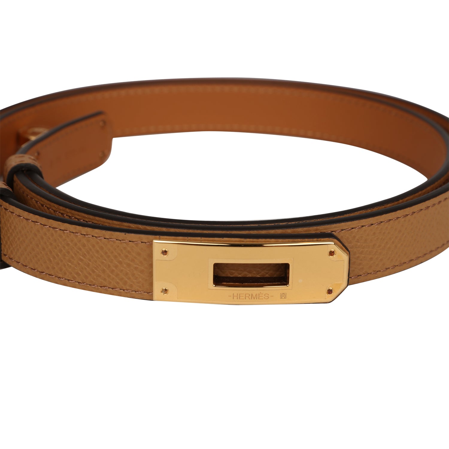 This Hermes Kelly Pocket 18 is in Biscuit and Nata Epsom with Gold Hardware, adjustable biscuit belt, tonal stitching, kelly style closure, removable snap closure pouch, and an engraved closure.
