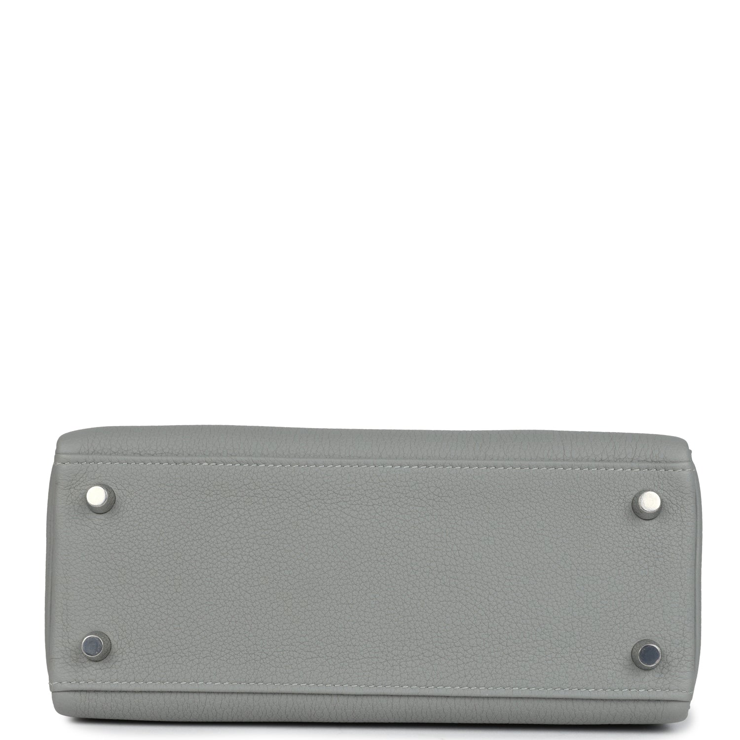 This Kelly, in the Retourne style, is in Gris Mouette togo leather with palladium hardware and has tonal stitching, front flap, two straps with center toggle closure, clochette with lock and two keys, single rolled handle and two removable shoulder straps; one leather and one canvas.