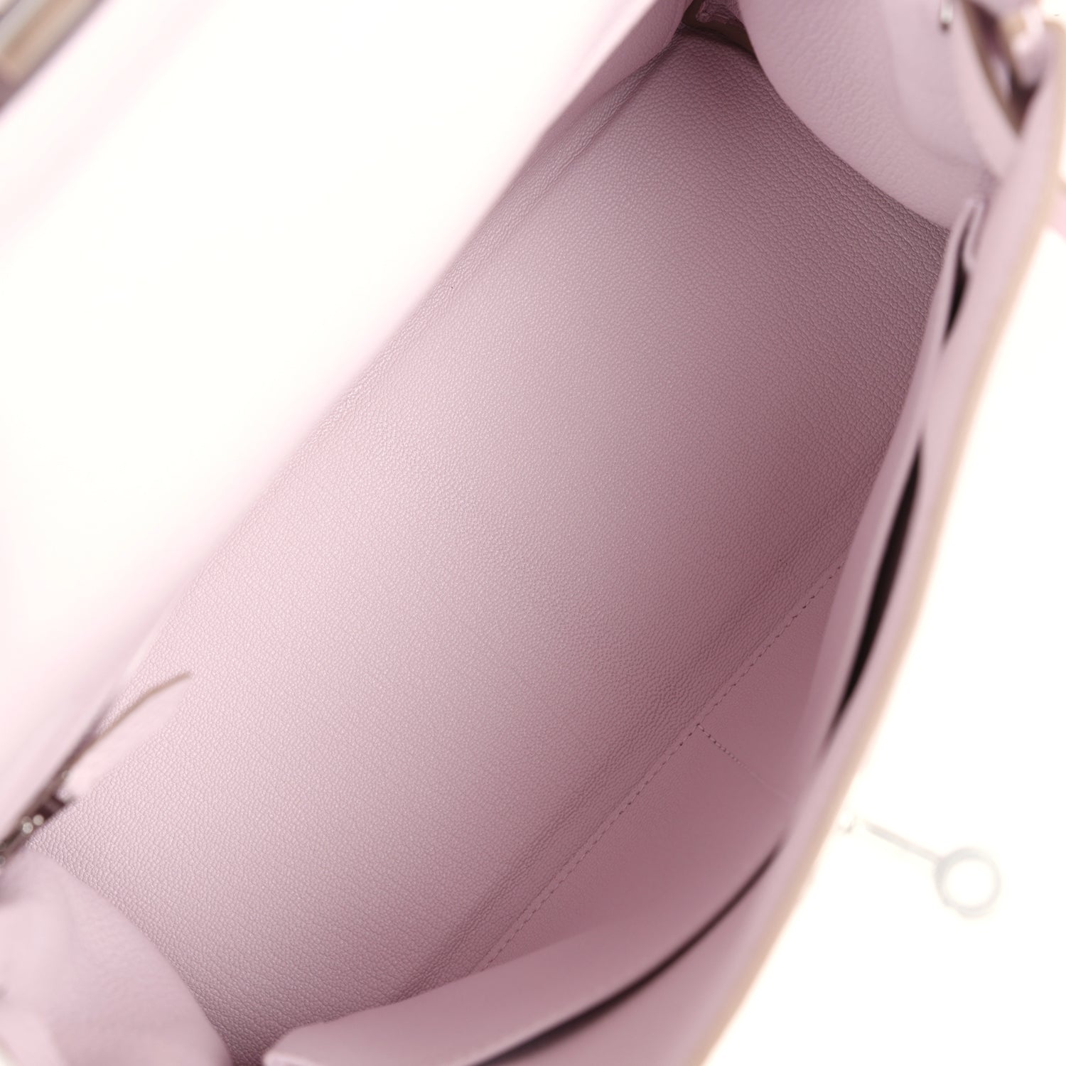 The interior is lined in Mauve Pale chevre and has one zip pocket with Hermes engraved pull and two open pockets on the opposite side.