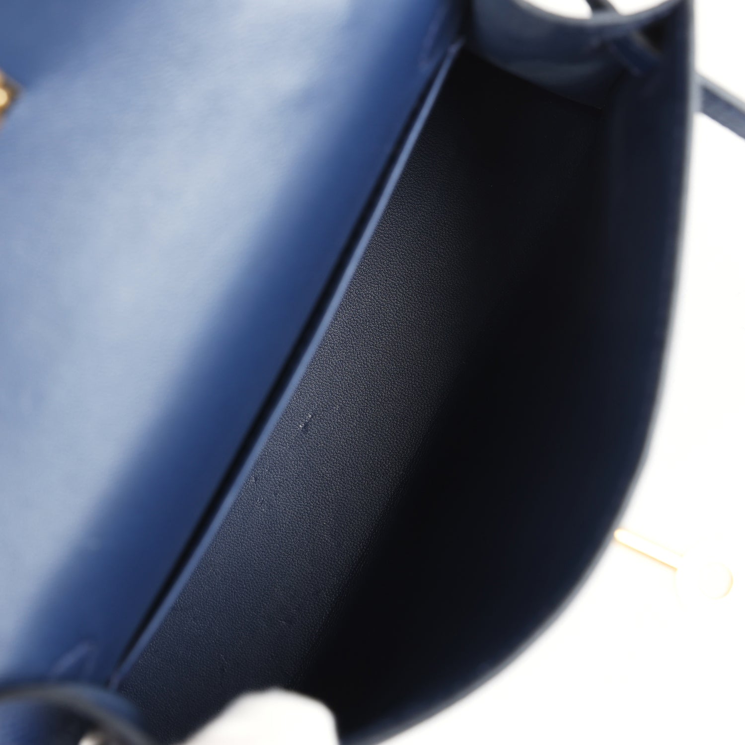 The interior is lined with Bleu Navy lambskin leather and has one open pocket on the back wall.