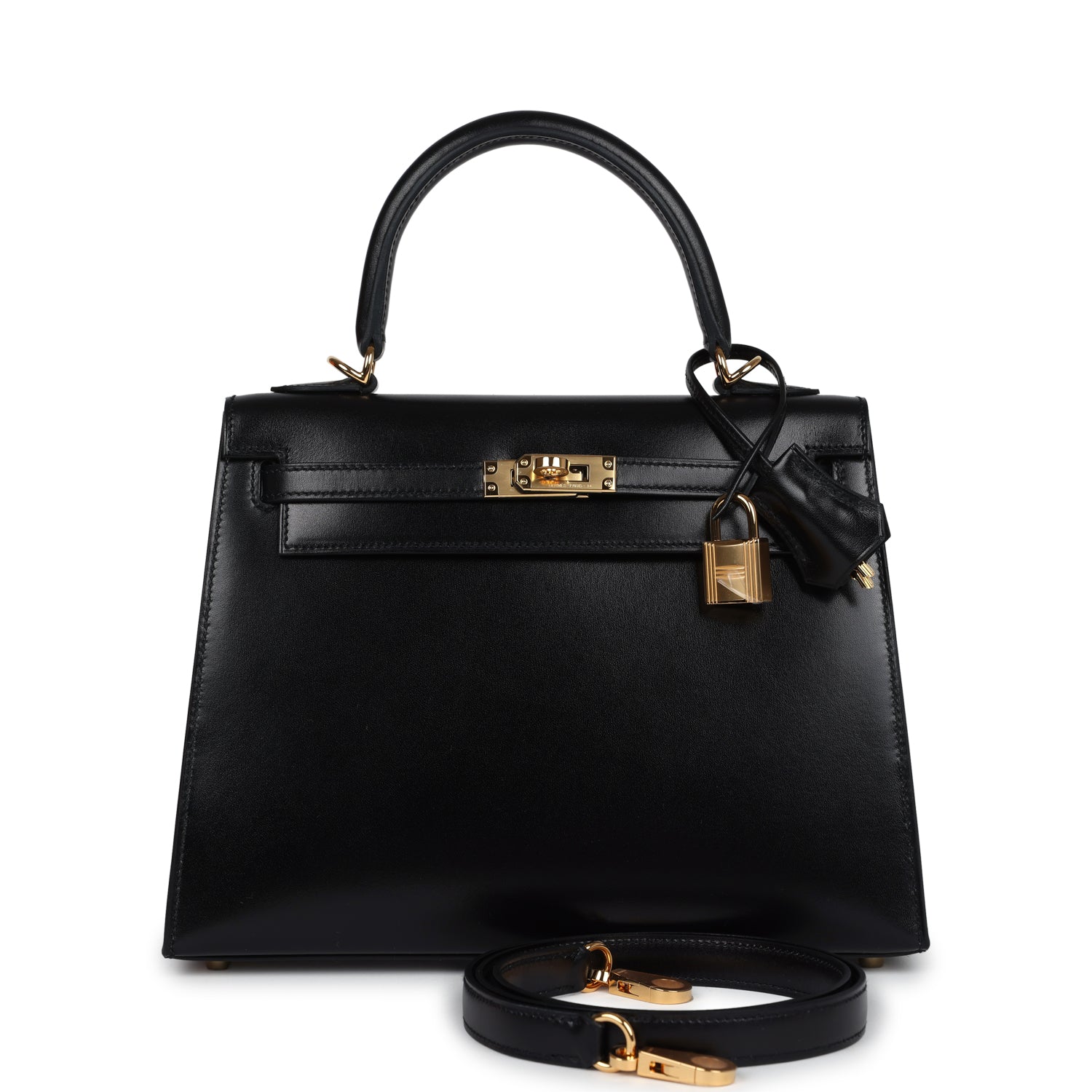 Hermes Kelly Sellier 25 Black Box Gold Hardware