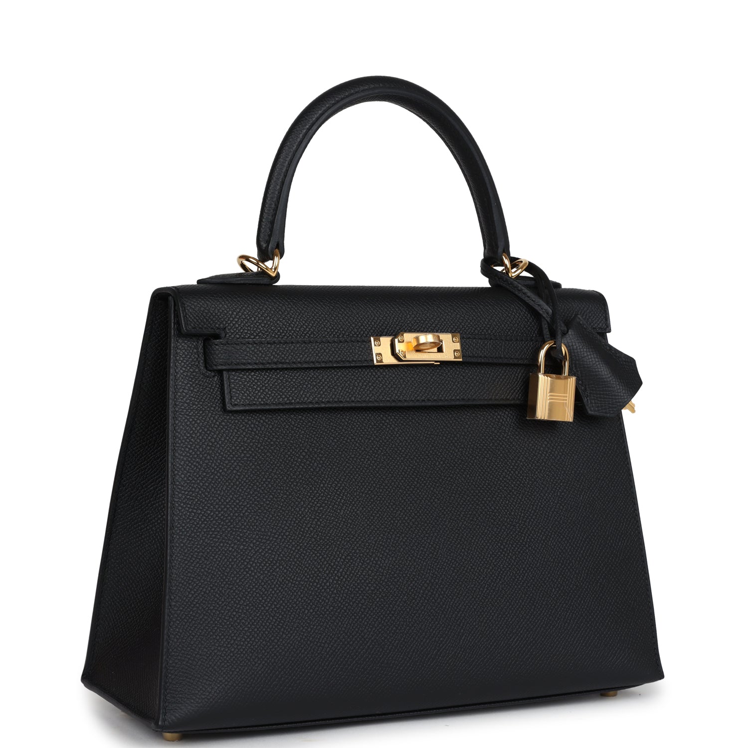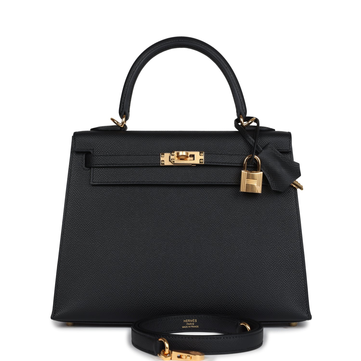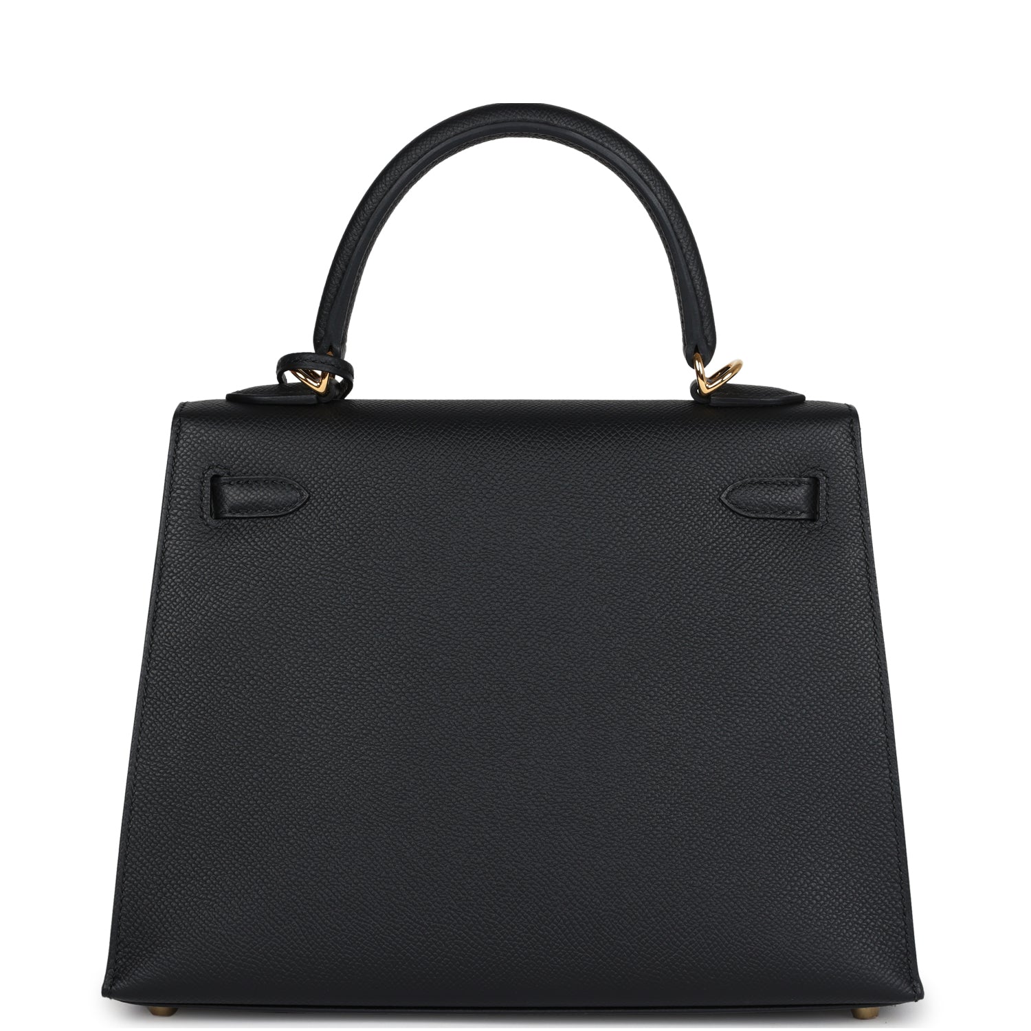 Hermes Kelly Sellier 25 Black Epsom Gold Hardware