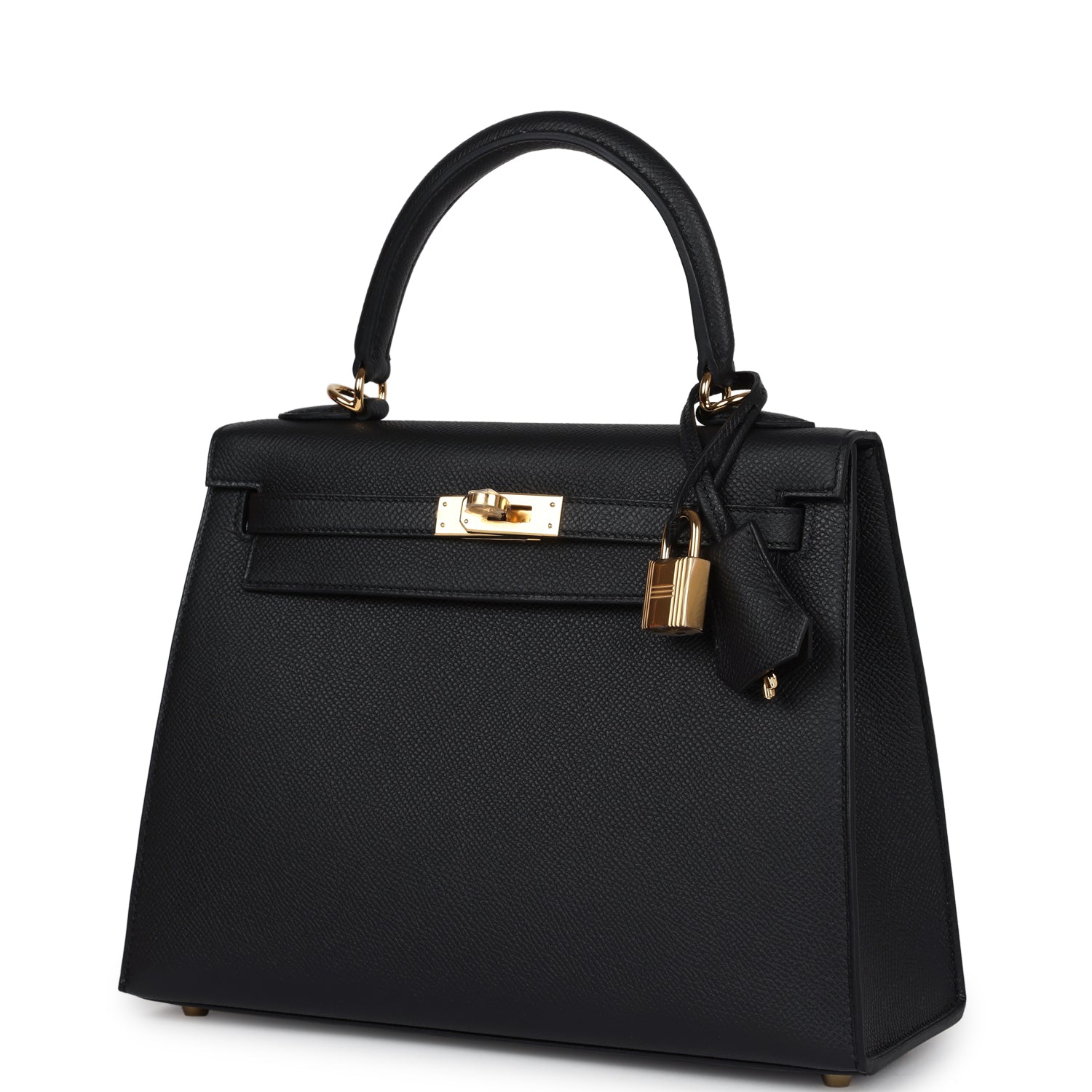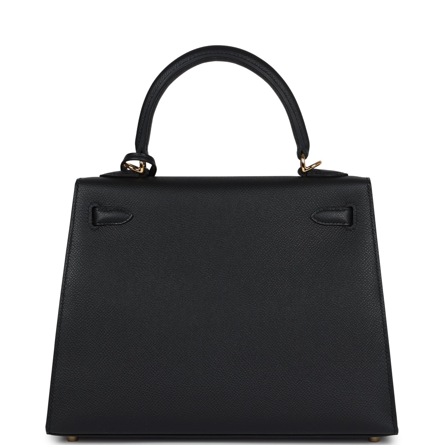 Hermes Kelly Sellier 25 Black Epsom Gold Hardware