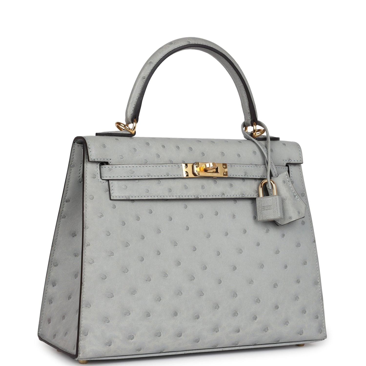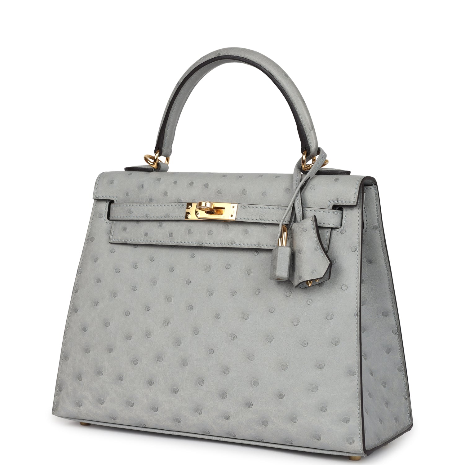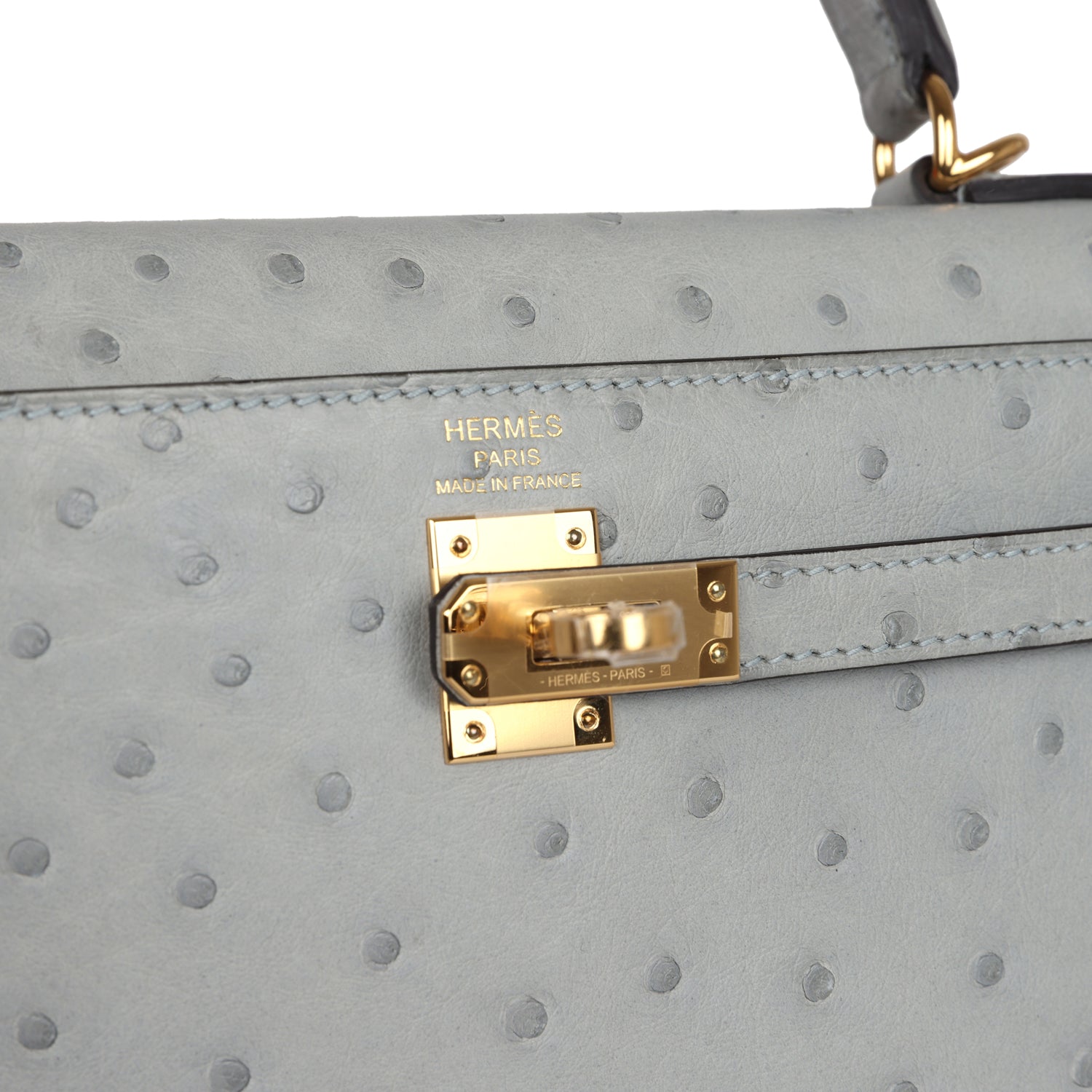 Hermes Kelly Sellier 25 Bleu Glacier Ostrich Gold Hardware