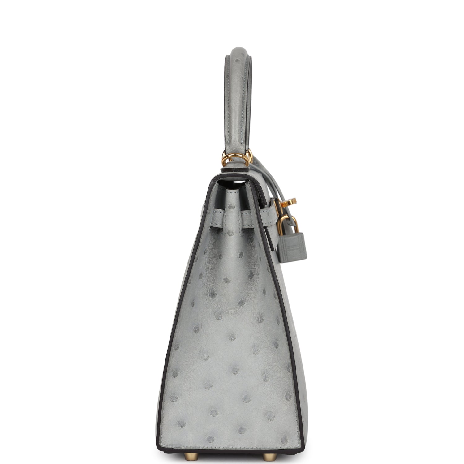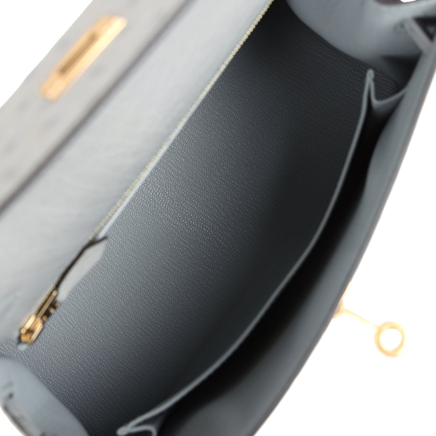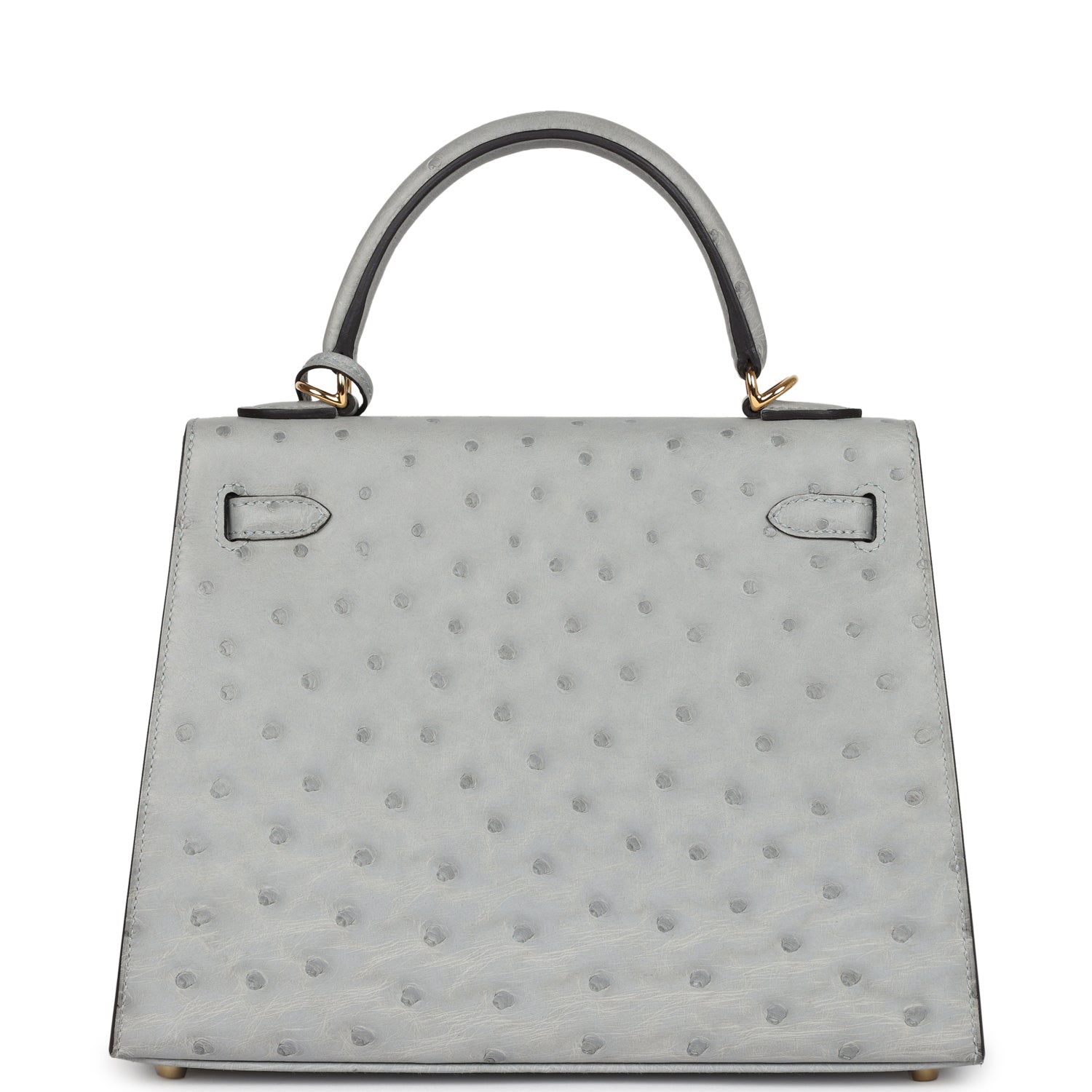 Hermes Kelly Sellier 25 Bleu Glacier Ostrich Gold Hardware