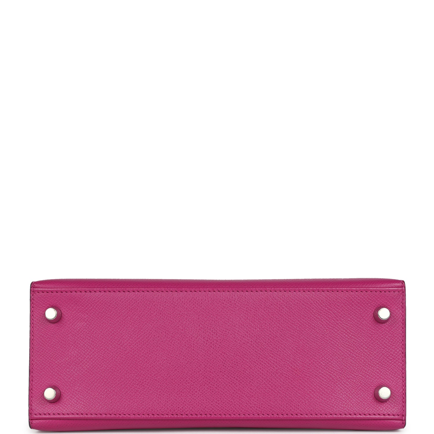 The interior is lined with Rose Pourpre chevre leather and has one zip pocket with an Hermes engraved pull and one open pocket on the opposite side.