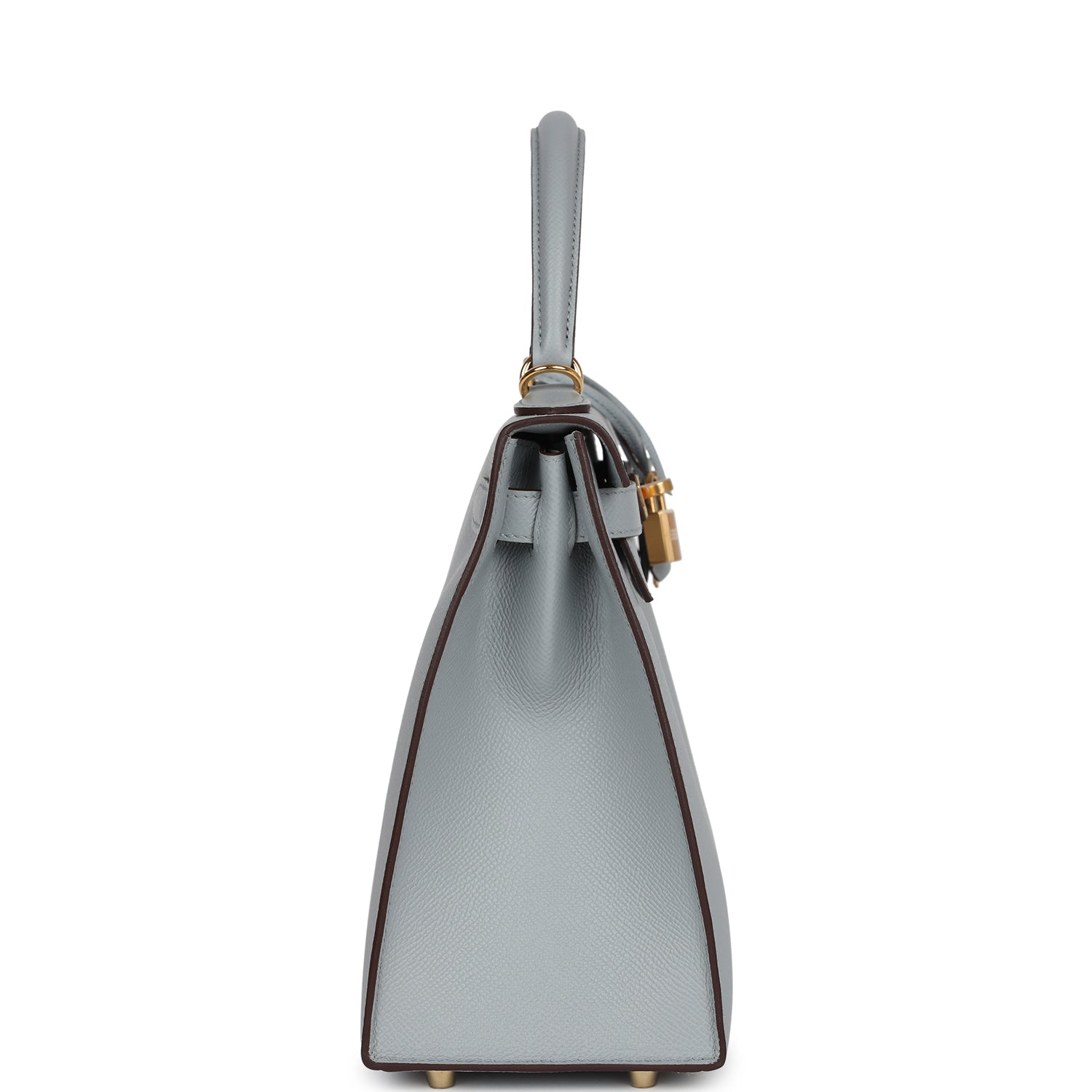 This Special Order Kelly, in the Sellier style, is in Bleu Glacier epsom leather with gold hardware and has tonal stitching, two straps with front toggle closure, clochette with lock and two keys, single rolled handle and removable shoulder strap.