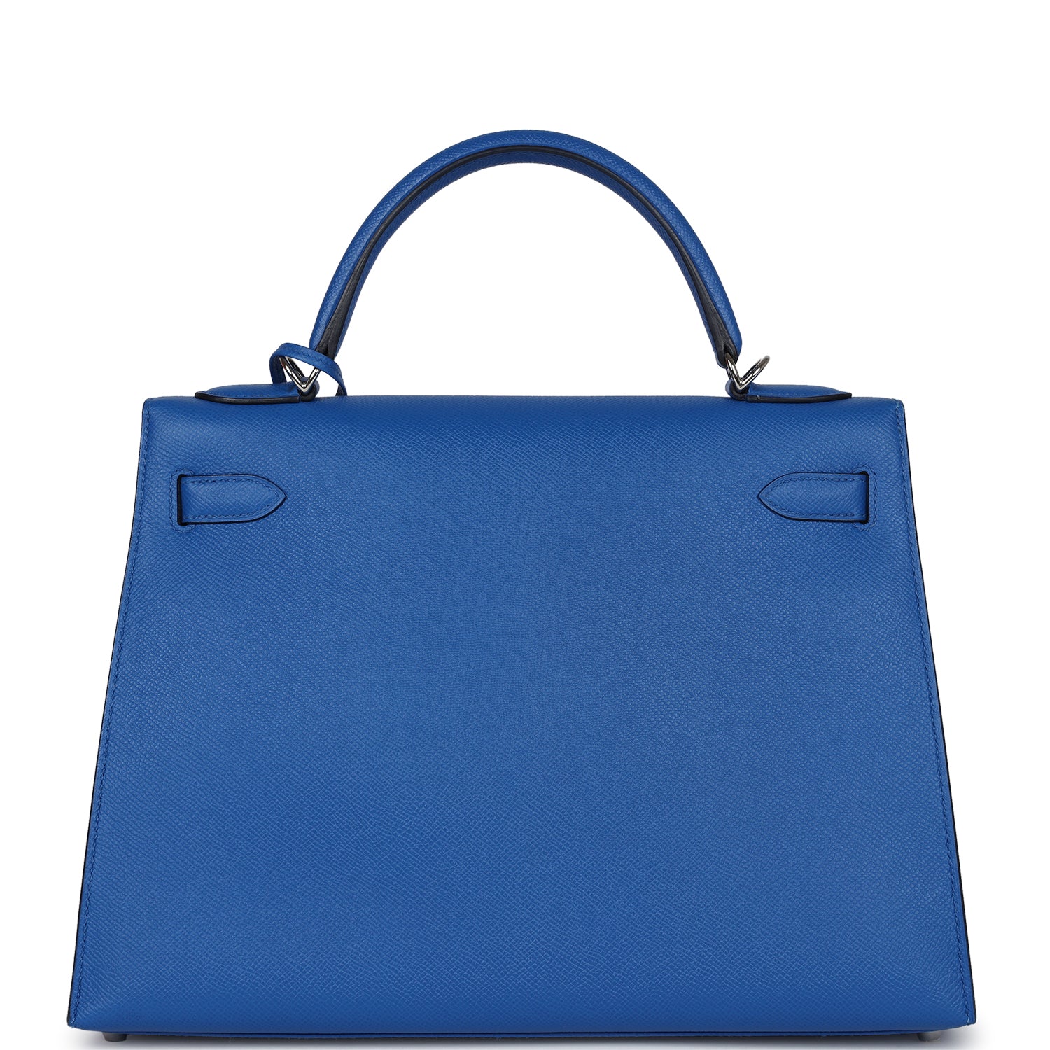 Hermes Kelly Sellier 32 Bleu France Epsom Palladium Hardware