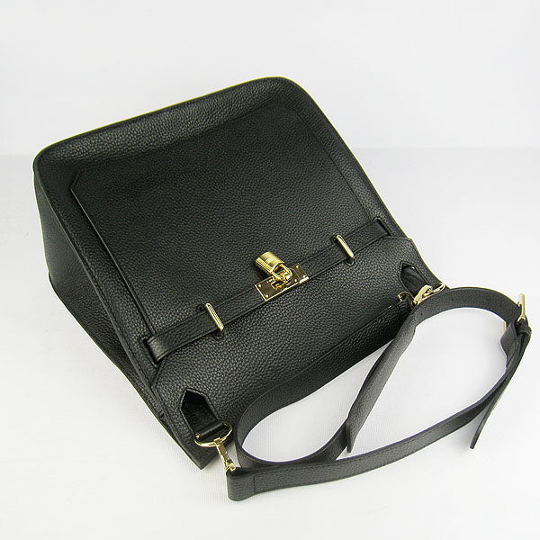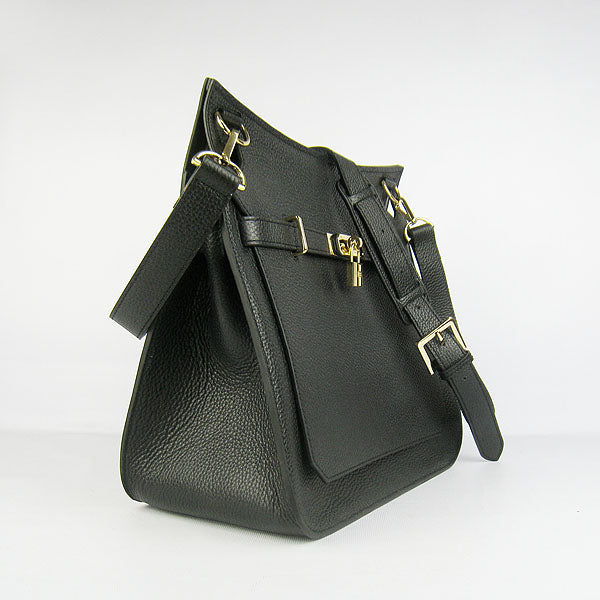 Hermes Leather Shoulder bag H6508 black golden