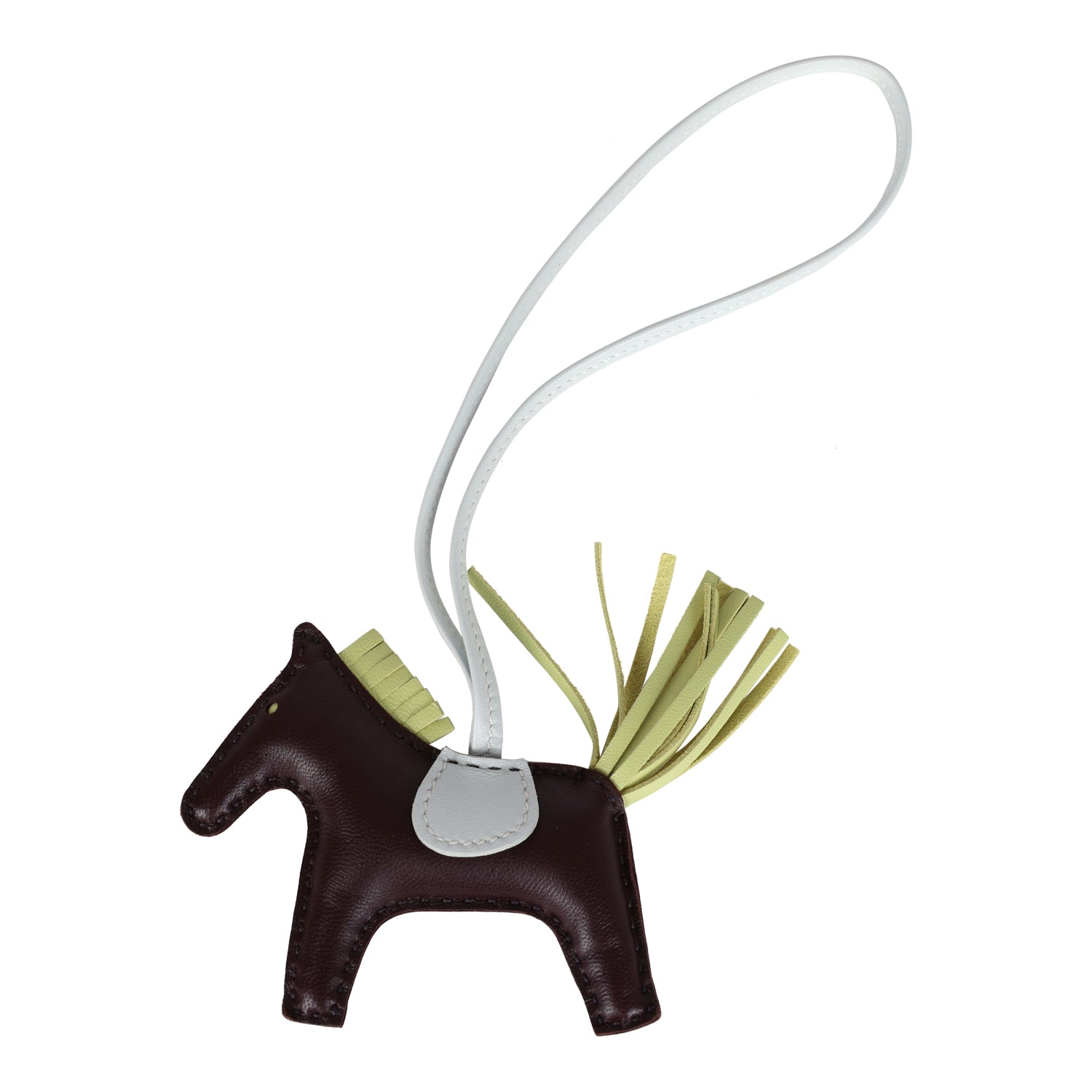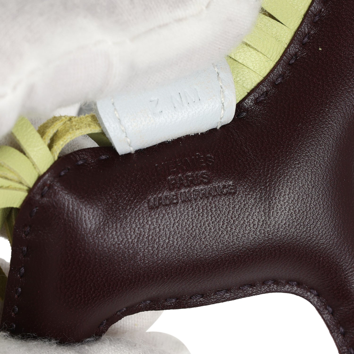 This Hermes Rodeo Bag Charm PM is in Rouge Sellier, BleNewBrume and Jaune Bourgeon swift and milo lambskin leather, tonal stitching, and is accented with Jaune Bourgeon mane, tail, and eyes, and BleNewBrume loop and saddle.