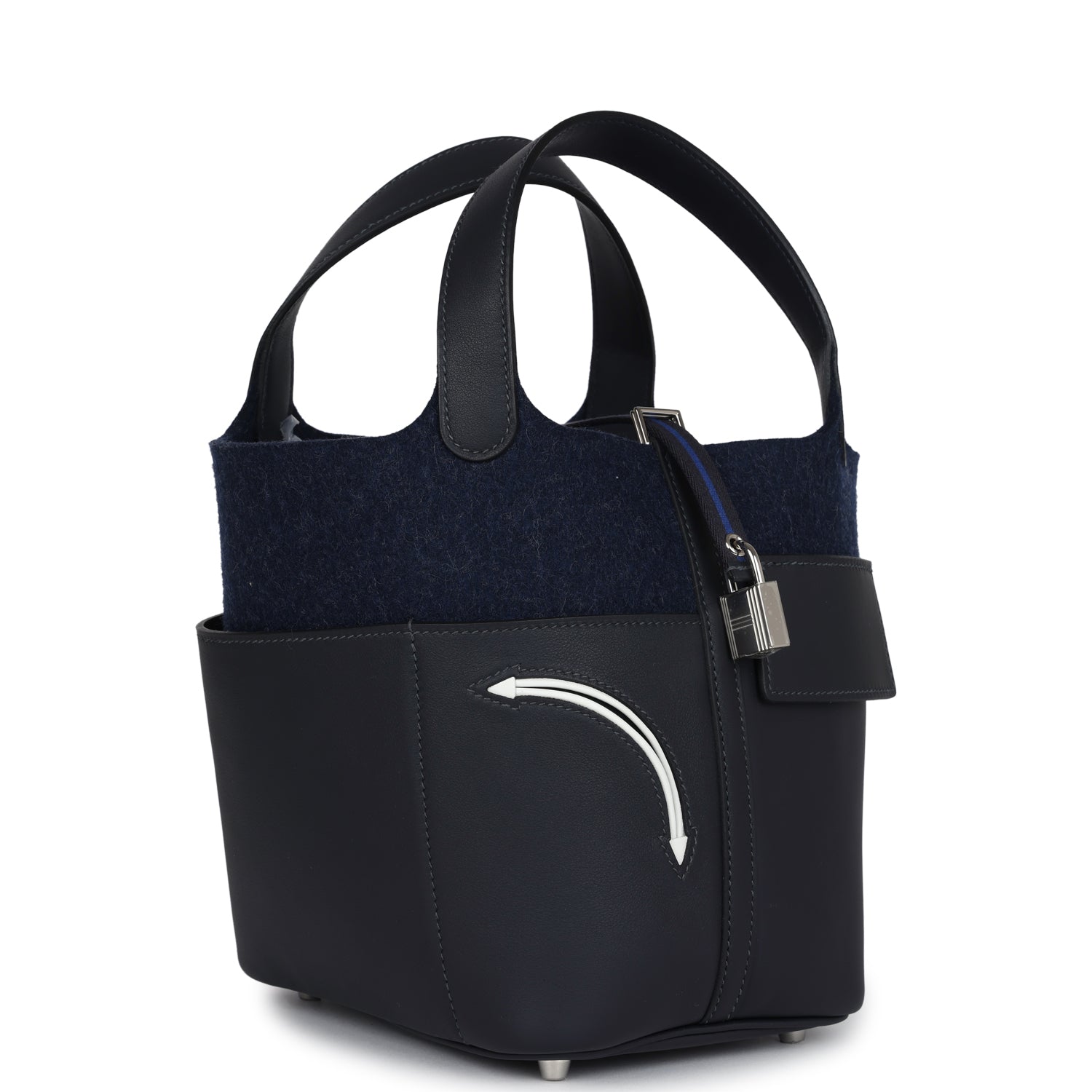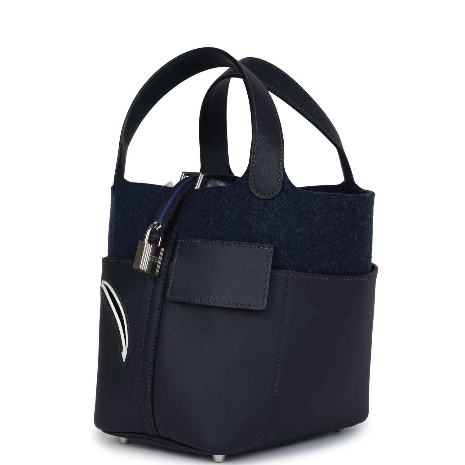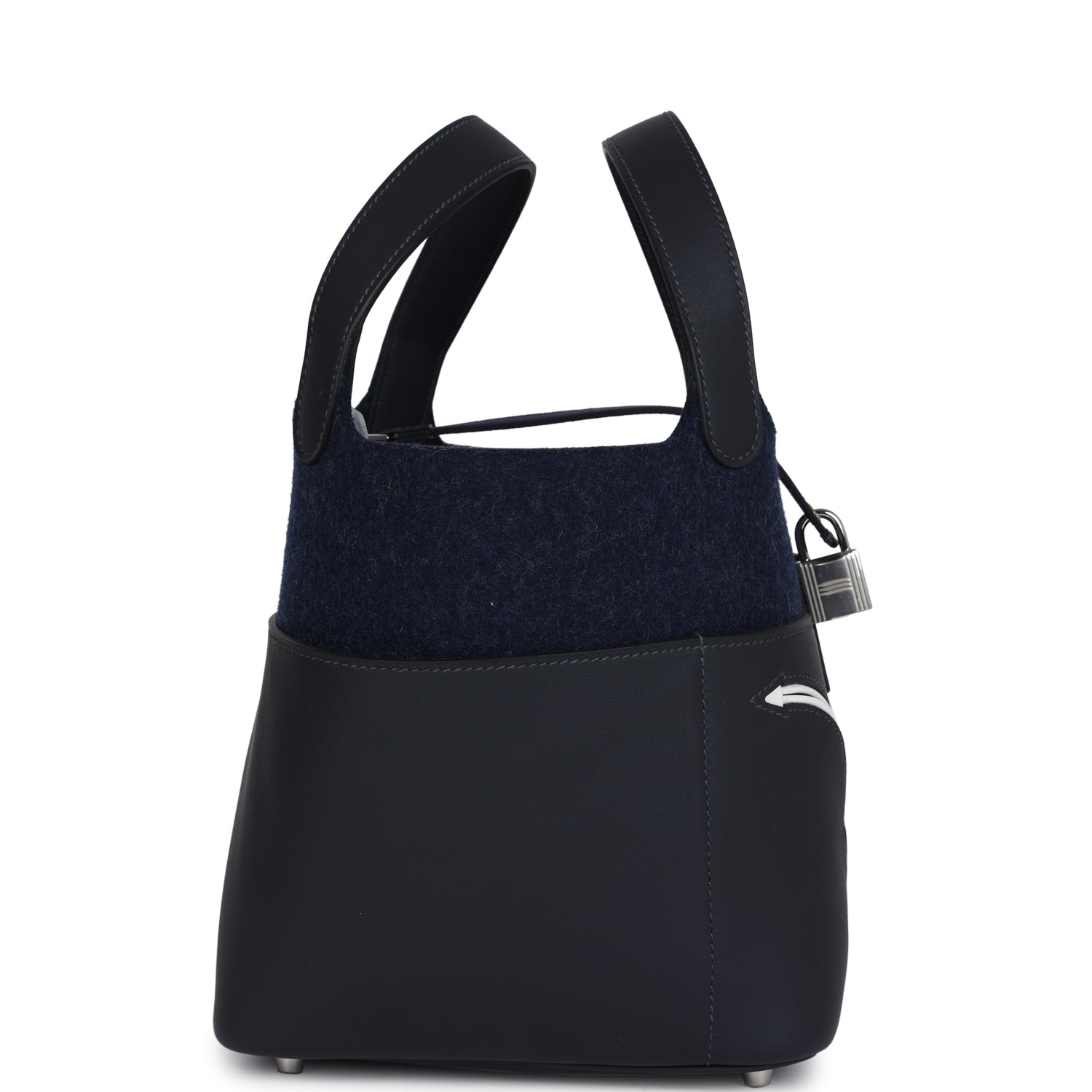 Hermes Picotin Lock 18 “Go Team” Bleu Nuit Wool Felt and Caban Swift Palladium Hardware