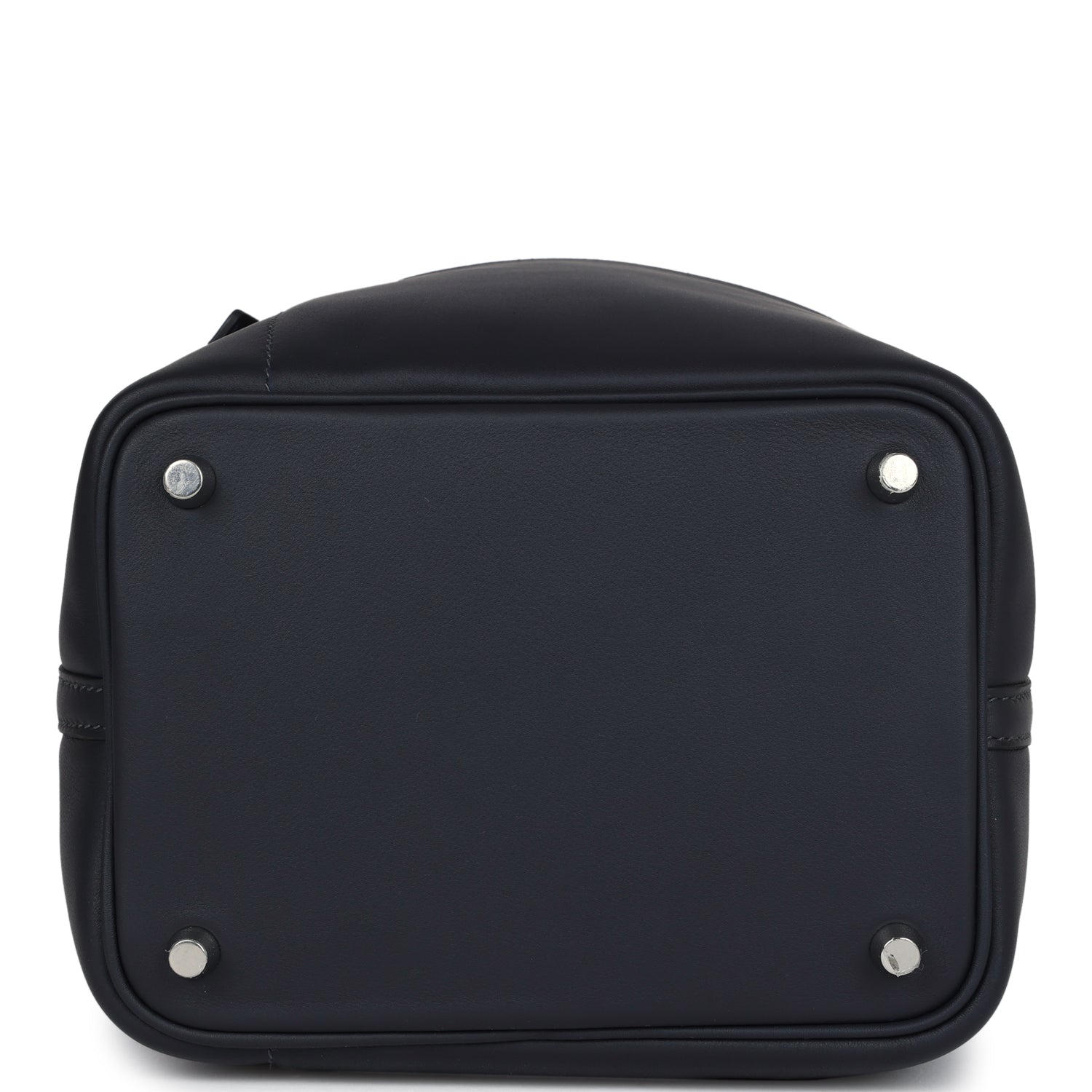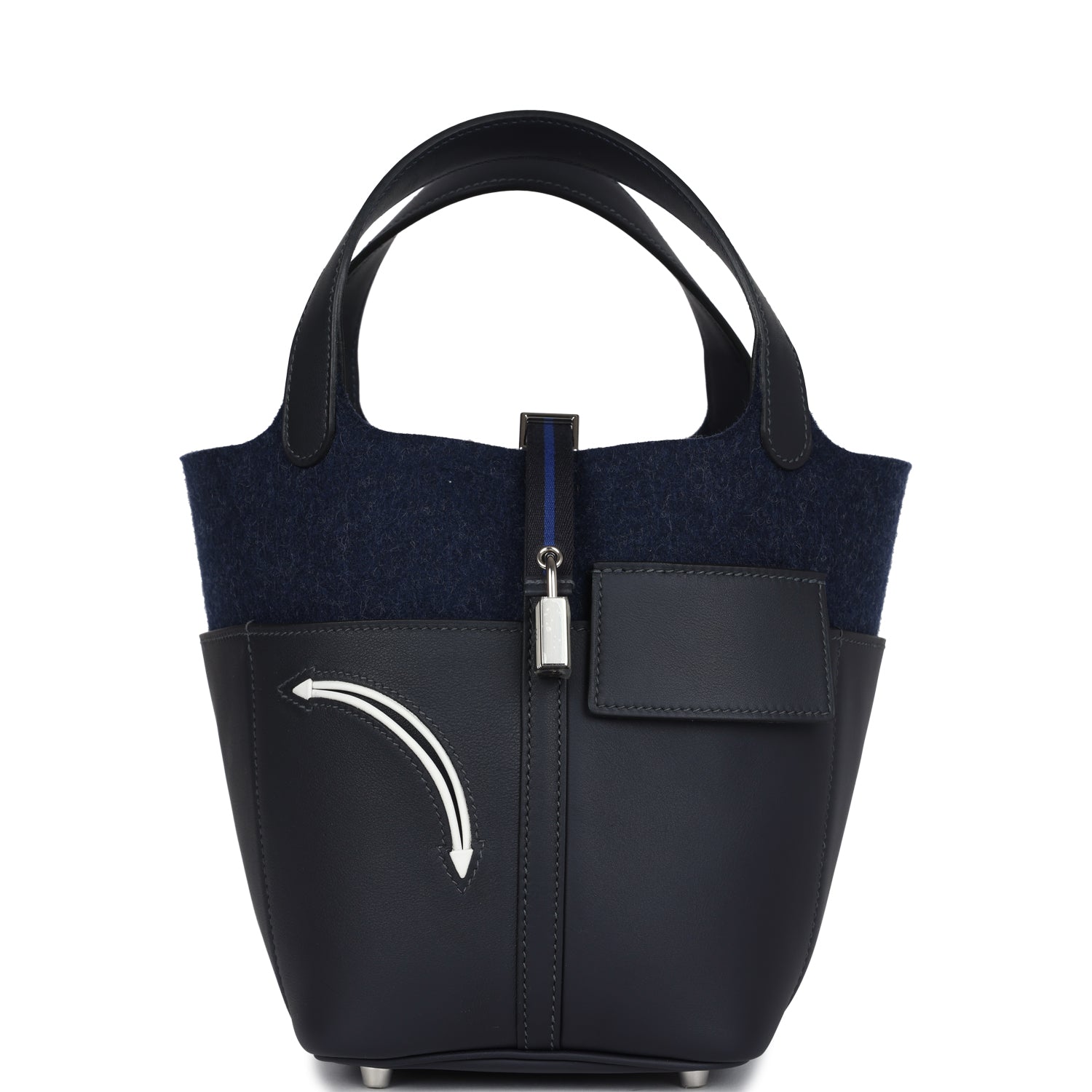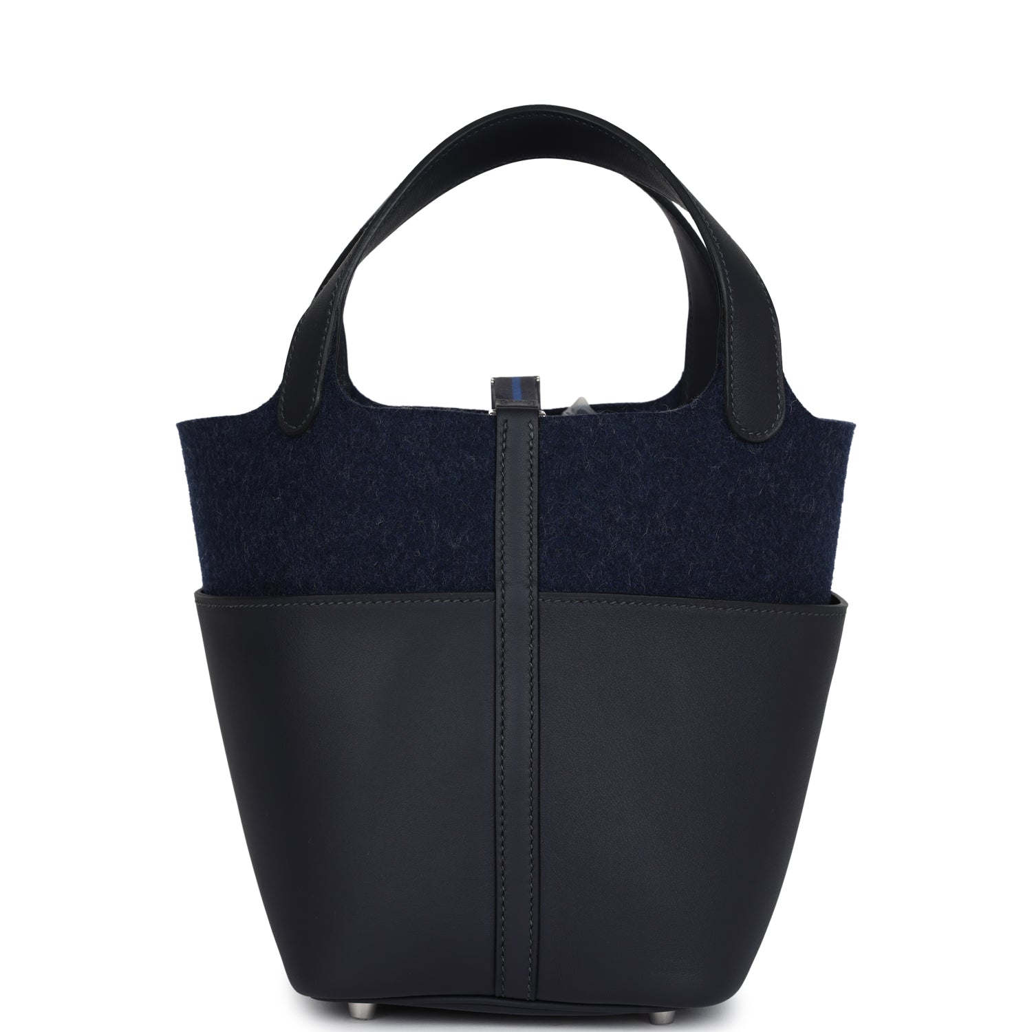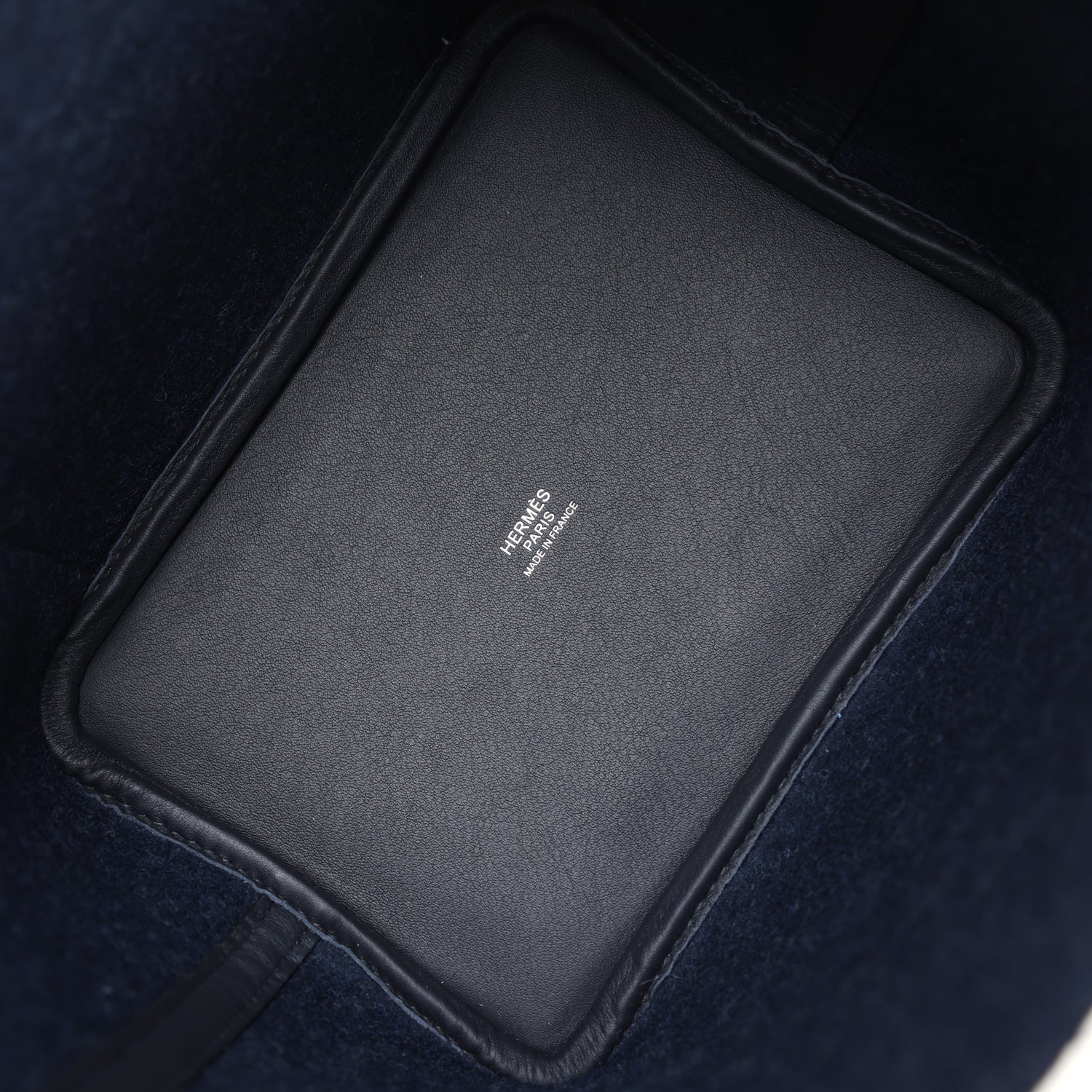 Hermes Picotin Lock 18 “Go Team” Bleu Nuit Wool Felt and Caban Swift Palladium Hardware