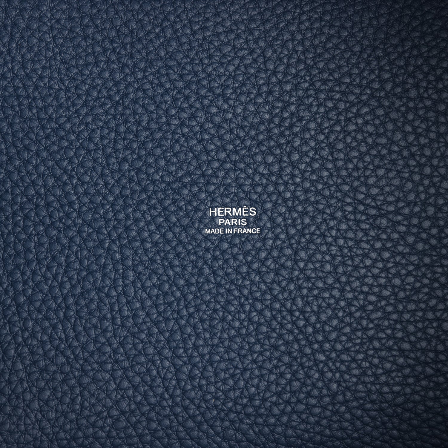 This Picotin Lock 22 is in Bleu De Prusse clemence leather with palladium hardware and has tonal stitching with two top handles.